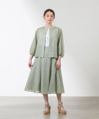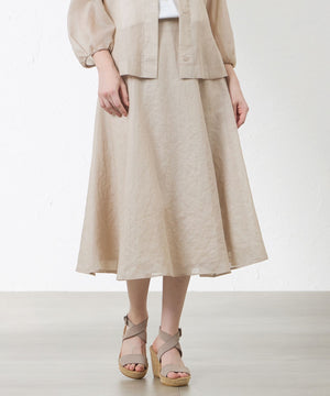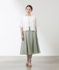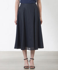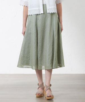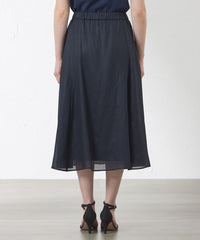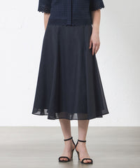 透け感のあるポリエステルオーガンジーでフレアのシルエットがきれいなスカートを作りました。腰回りはすっきり、裾に向かって広がるフレアは上品さとエレガントな印象を演出します。