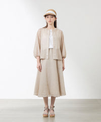 ポリエステル100%のオーガンジーです。適度なハリ感があり、ナチュラルなワッシャー感が夏らしく、キレイ目カジュアルな着こなしが叶う素材感です。
