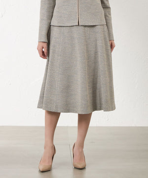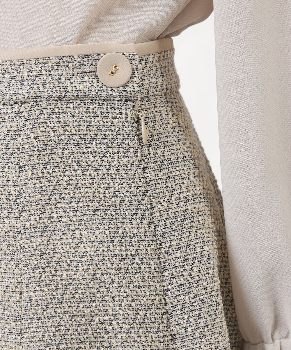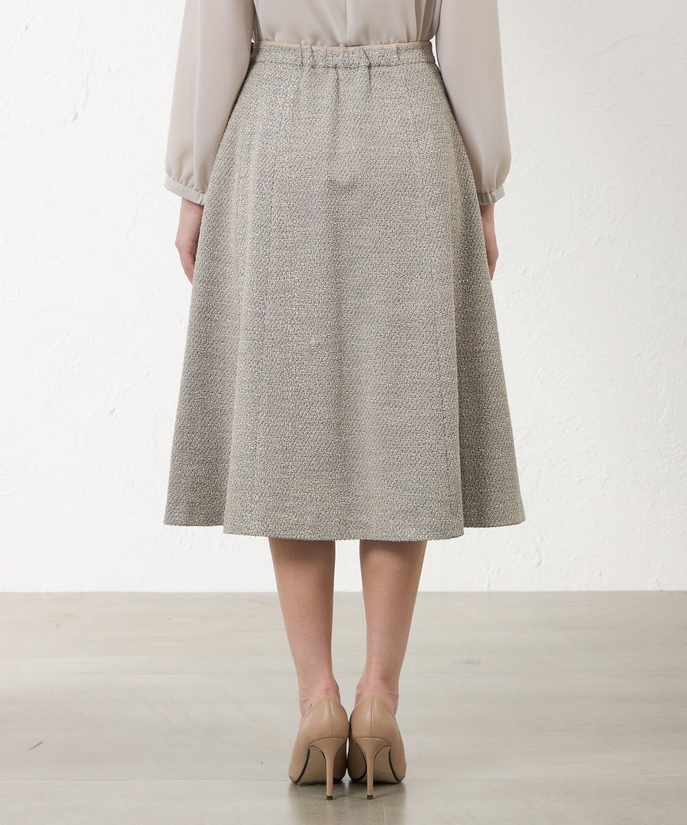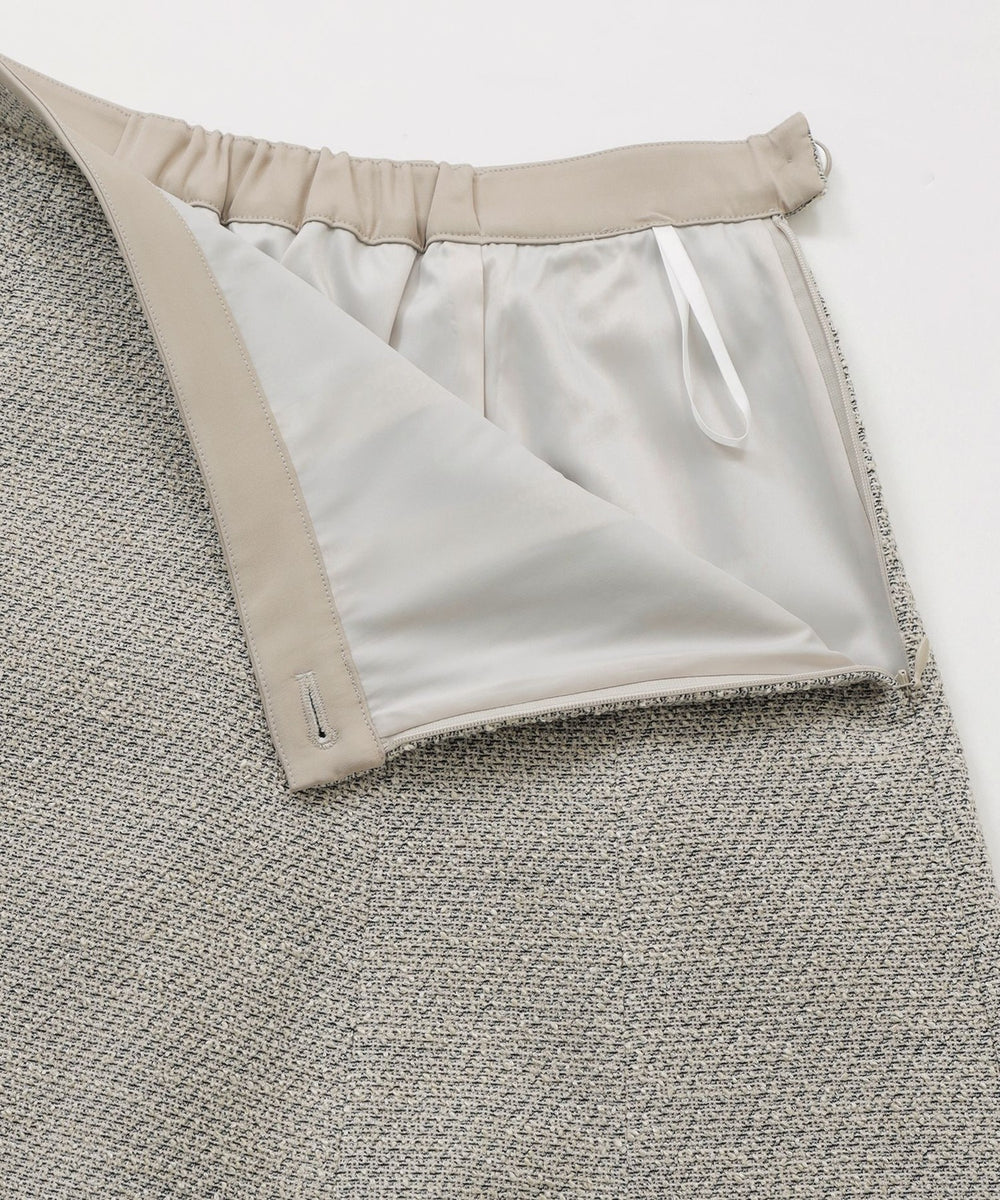 スカートのベルト上端にも同素材のジャケット(V5E05-652)と同じ配色ディテールを施し、統一感のあるデザインに。