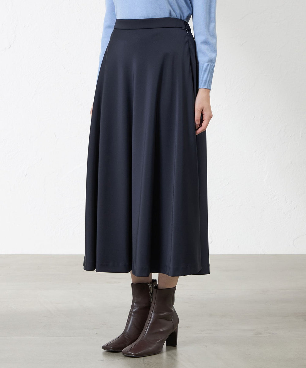 マットなツヤ感のあるサテン素材のフレアスカートは上品で落ち着いた質感が特徴です。程よい厚みがあるため寒い冬にも着て頂けます。