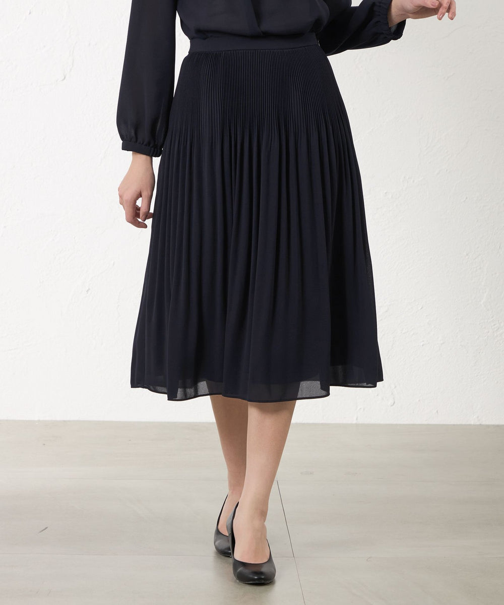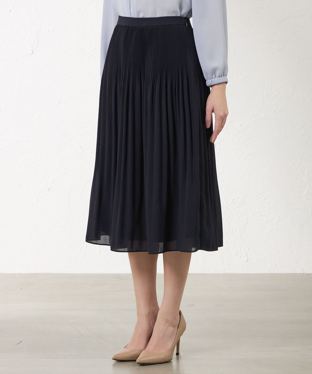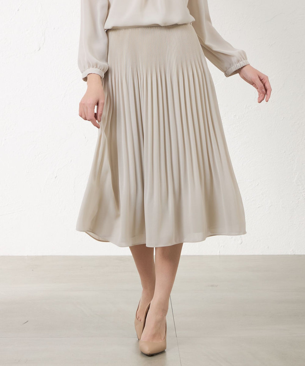 上品な印象を演出する、プリーツデザインが特徴のスカート。