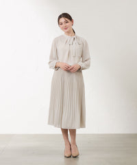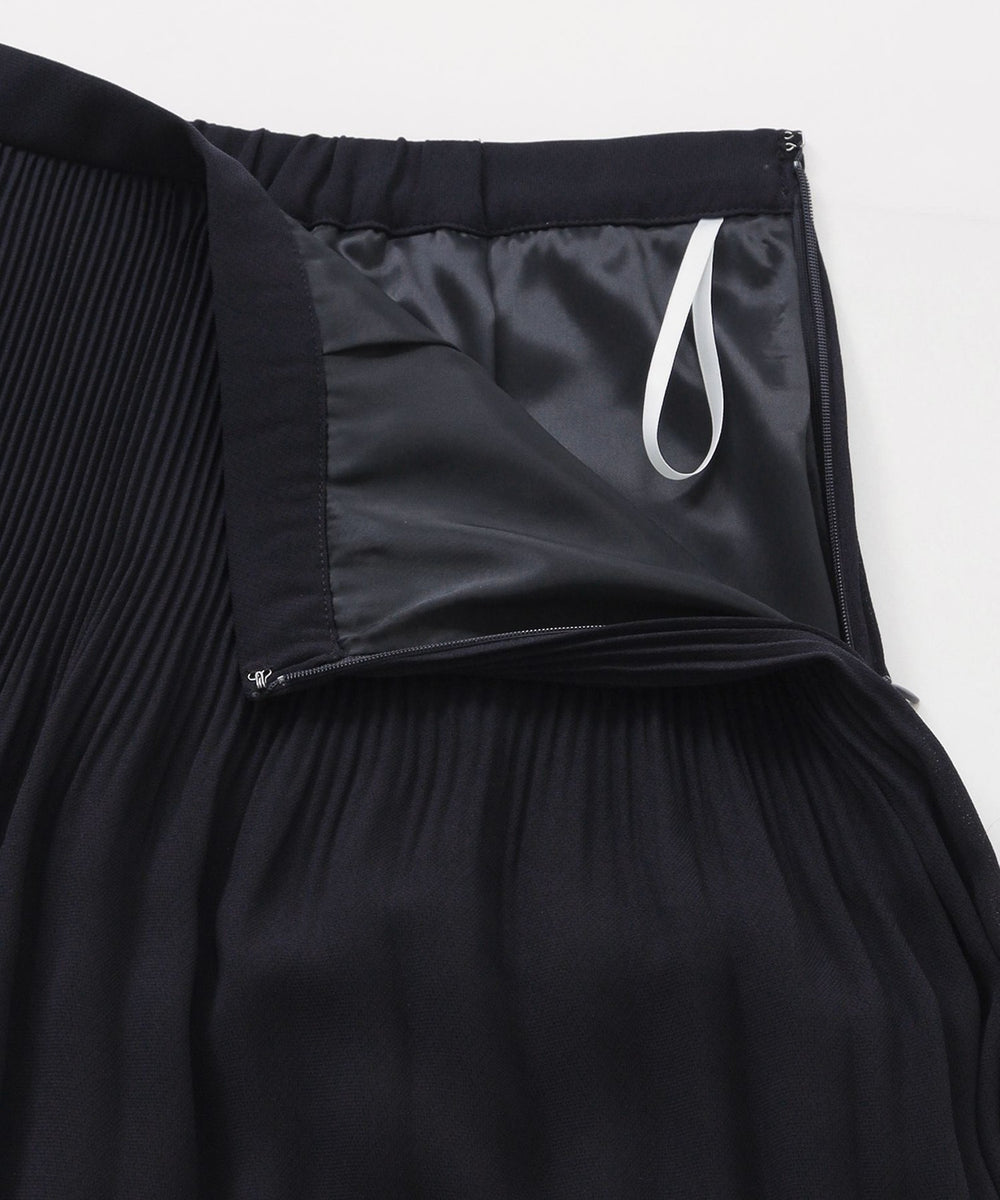 ウエスト付近は幅の狭いプリーツでお腹まわりをすっきり見せ、裾に向かってプリーツ幅が広がることで、動きのある美しいシルエットに仕上げました。
