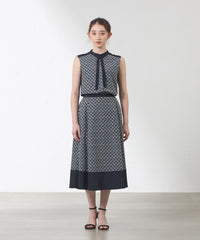 アマカ20周年を記念して作られたオリジナルプリント、リバティのRibbon medallionをモチーフに刺繍を施したスカートです。切り替え部分全面に刺繍パーツを使った、贅沢なアイテムです。一部に同色の共布で刺繍を入れることでアクセントになり、軽やかさを演出します。セットアップでブラウス(V5M71556)と合わせたスタイリングがお勧めです。