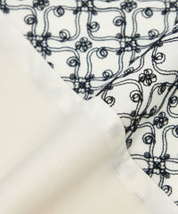 アマカ20周年を記念してリバティに作ってもらった柄、Ribbon medallionをモチーフに刺繍を施した素材を作りました。素材は薄手のデシンを使用し、柔らかく落ち着いた光沢感のある生地が仕立て映えする、品のある素材です。