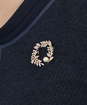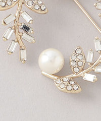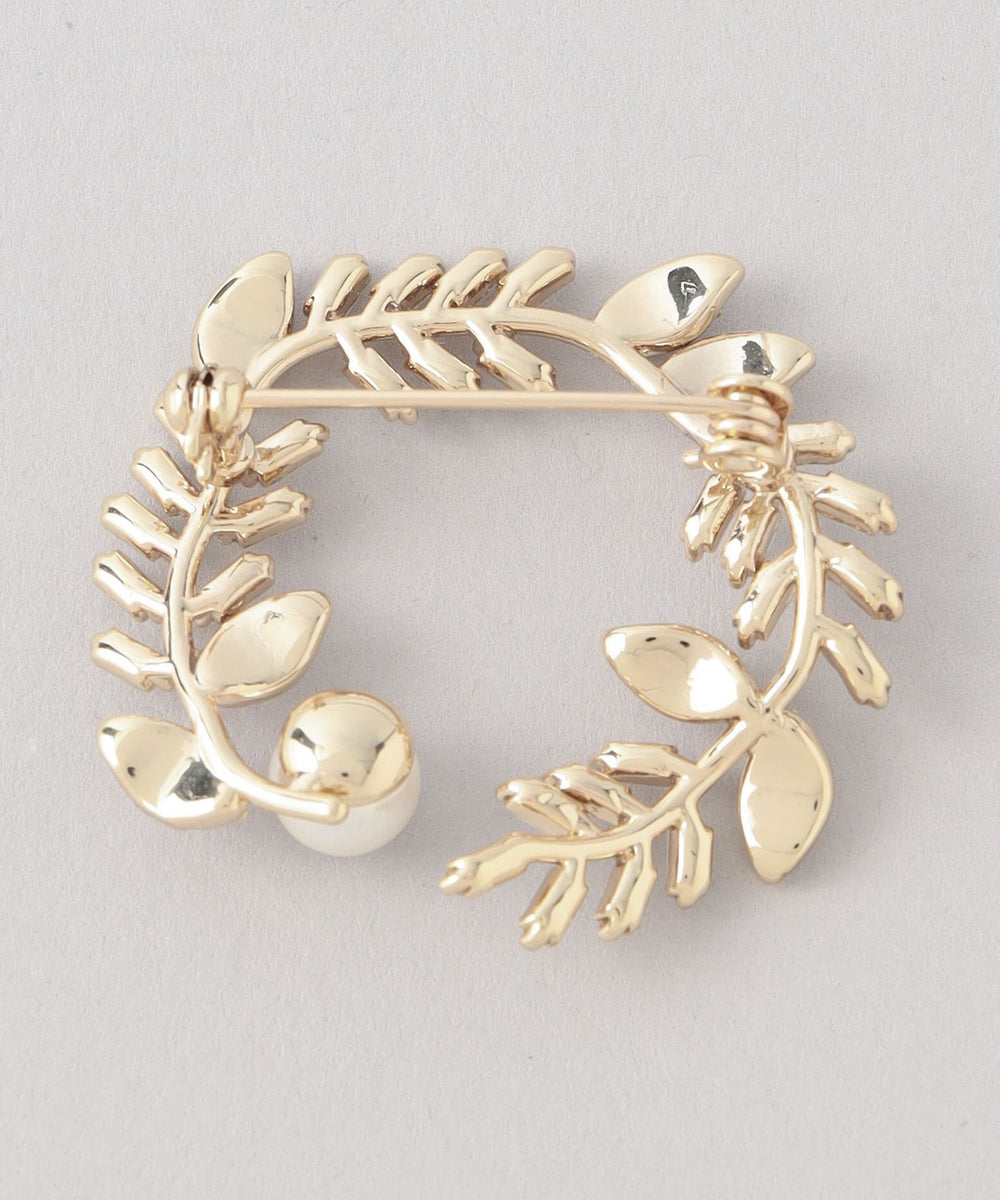 自然に曲げたラインでリースに見立てたブローチに、繊細なスクエア型のミニガラスやリーフのガラスパーツをあしらいました。きちんとしすぎないフォルムがオケージョンから普段使いまで幅広くコーディネートに取り入れやすいブローチです。