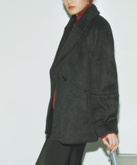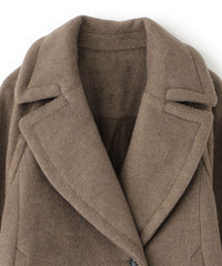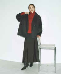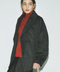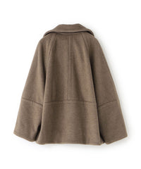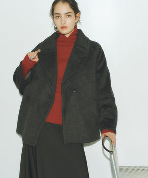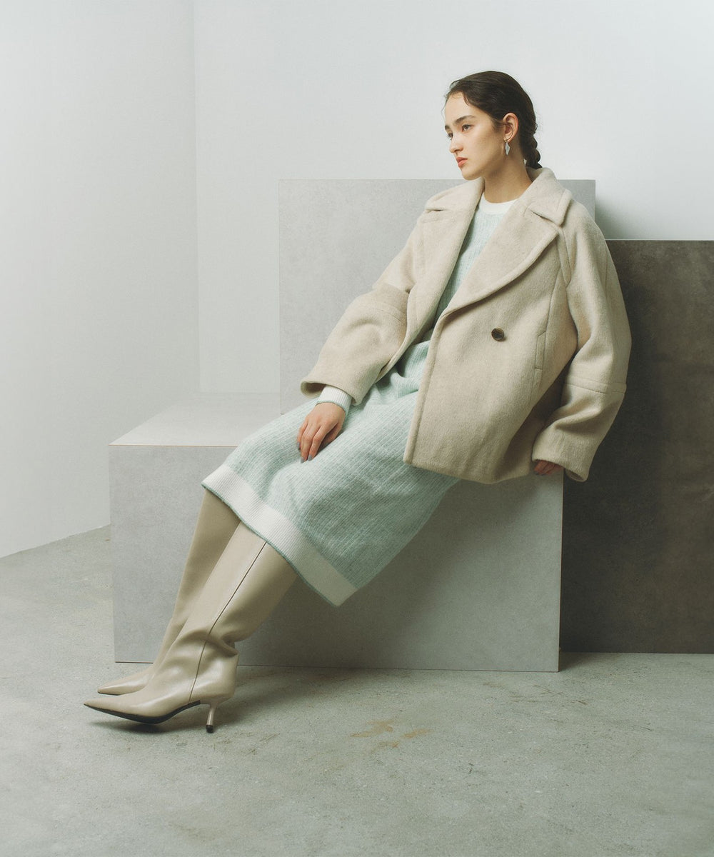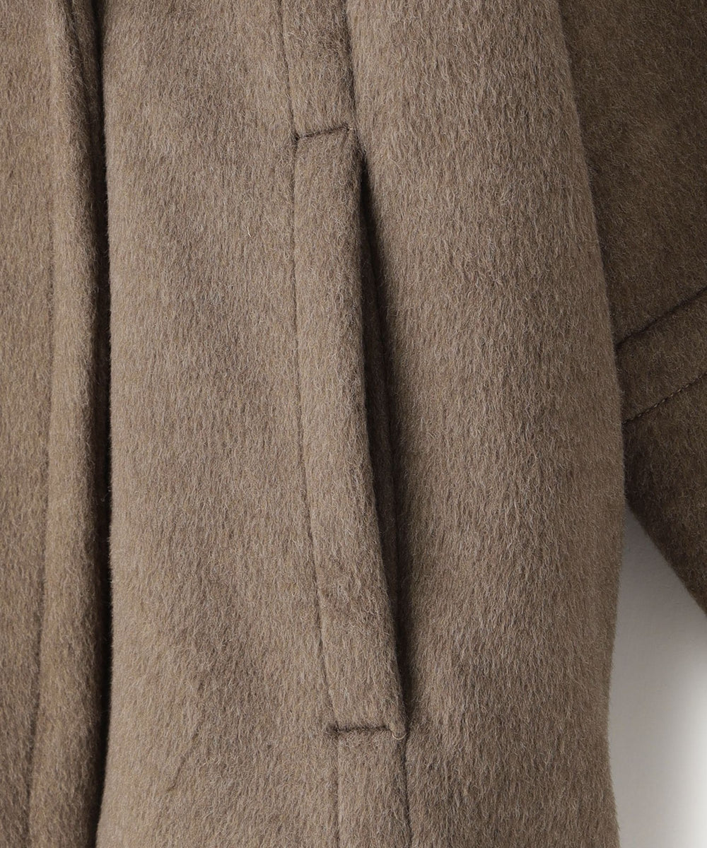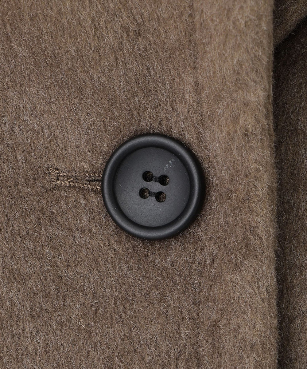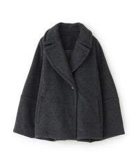 ややAラインに広がったシルエットと、丸みのあるフォルムがポイントのショートコート。大き目の襟とややボリュームのある袖のフォルム感も、デザインポイントになっています。ヒップにかかる70㎝丈で、スカートにもパンツにもバランスよく合わせられます。
