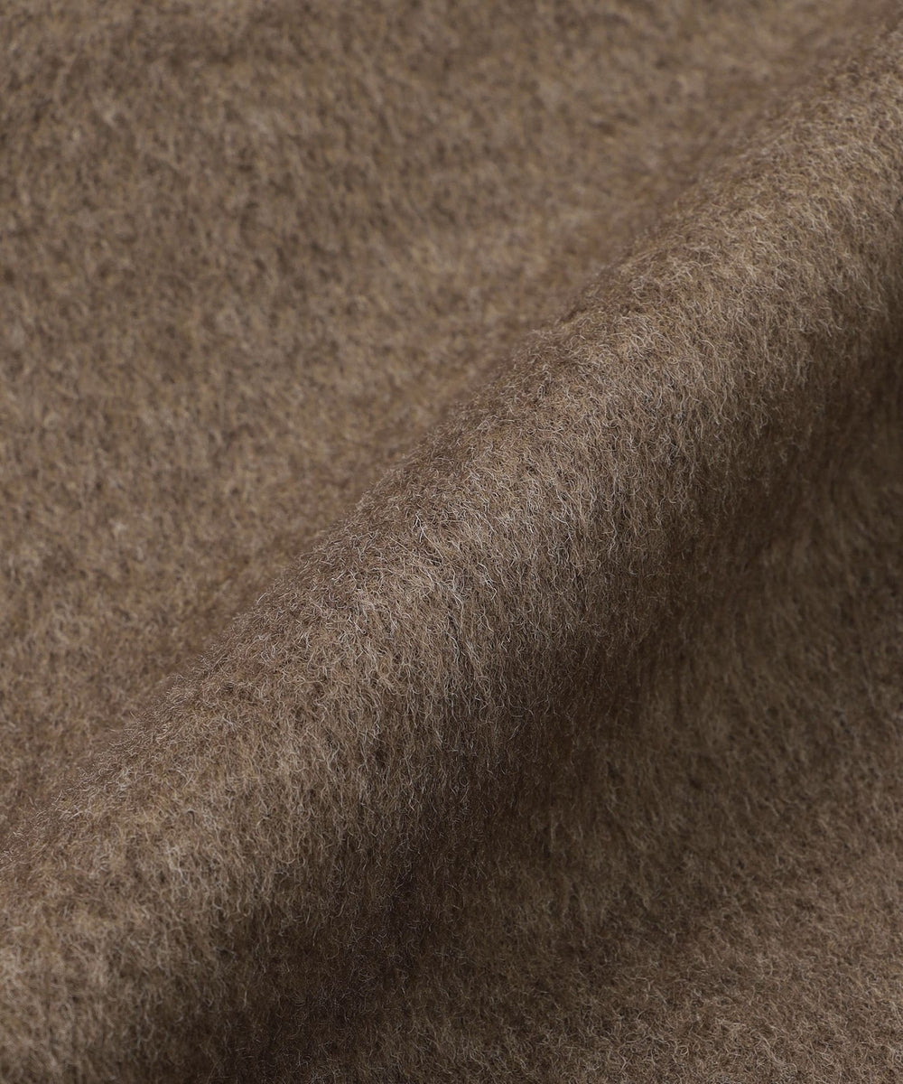 温かみのある表情が特徴の圧縮ニットシャギー素材。目の詰まった編地の圧縮ニットなので、見た目以上に軽い着用感ですが、真冬でも十分防寒コートとして活躍します。 ニットの編地なので、ほどよくストレッチ性もあり、心地よい着用感です。