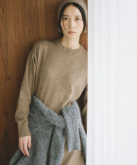 シンプルながらも着回しのしやすいセミフレアニットワンピース。