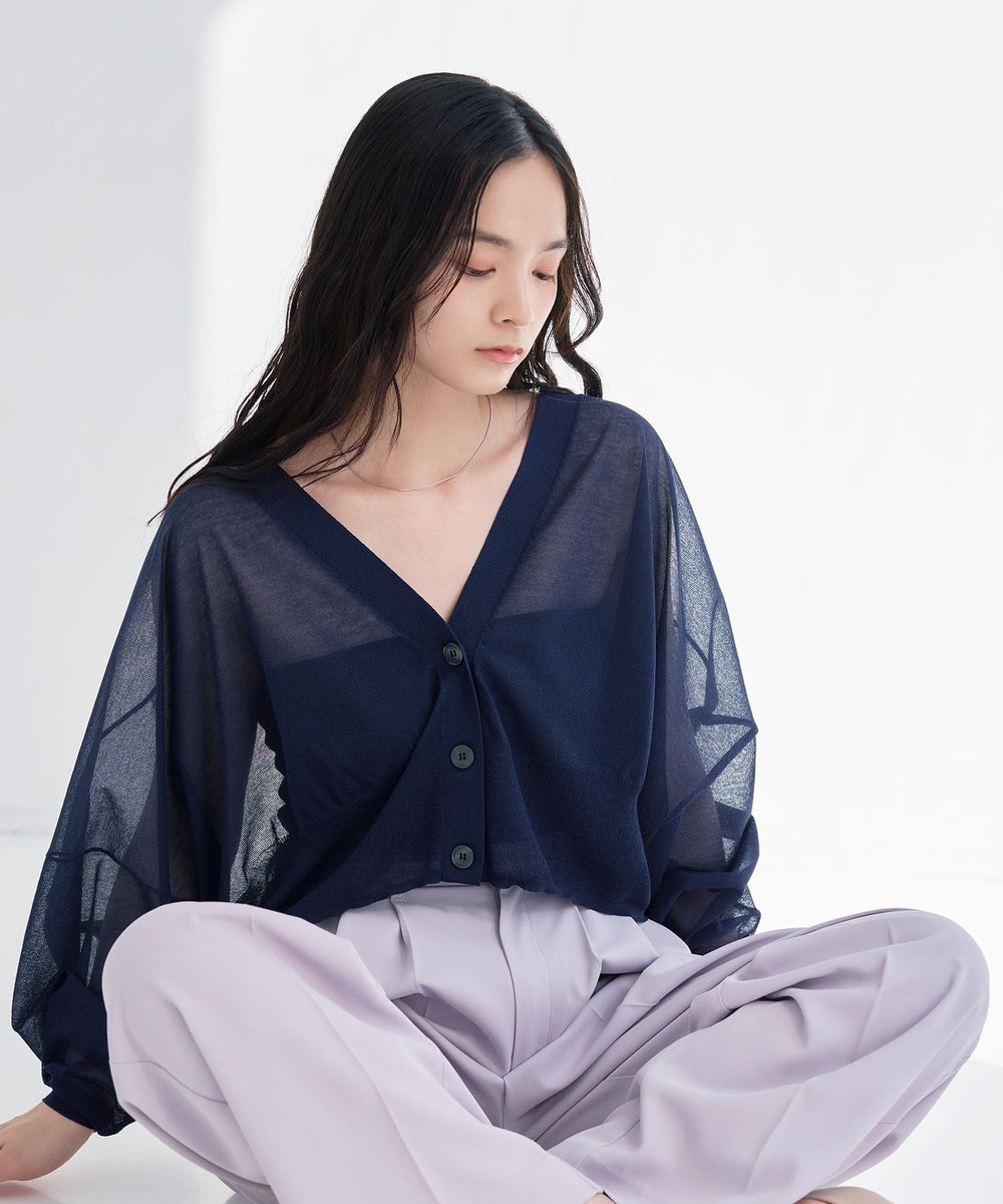 繊細な透け感が特徴のシアーカーディガン。軽やかでゆとりのあるシルエットが、暑い季節にも快適な着心地を提供。同時に、冷房対策としても活躍する着回し力のあるデザインです。