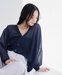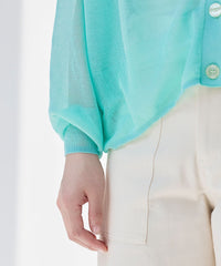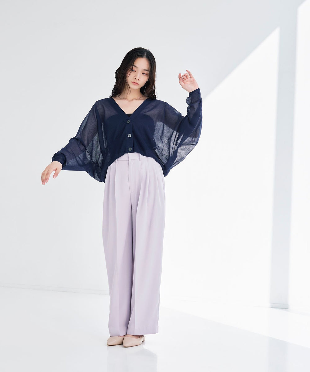 トレンドのシアー素材がこなれ感のある一枚。夏の体温調節や冷房対策等にも活躍しますし、比較的どんなコーディネートにも合わせやすくプラスワンアイテムとして最適ですよ!