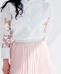 繊細でエレガントな表情の透け感オーガンジー素材を使用。細やかなラメのような光沢感が、上品で華やかな印象を演出します。