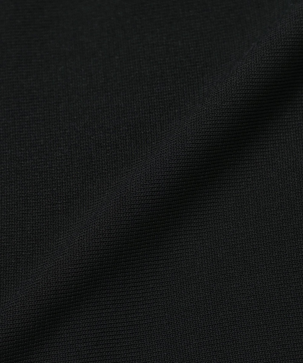 レーヨンナイロンストレッチ素材を使用しており、レーヨン特有のしなやかさとナイロンの強度に加えて、程よいキックバックがあるため、動きに合わせてフィットし、快適な着心地を保ちます。さらに、通常より強く撚りをかけた強撚糸を採用することで、肌離れのよい清涼感が生まれ、編地の目面もすっきりと美しく仕上がります。こうした特徴から、TO BE CHICの定番として長く支持されている素材です。