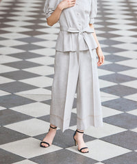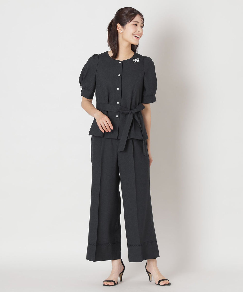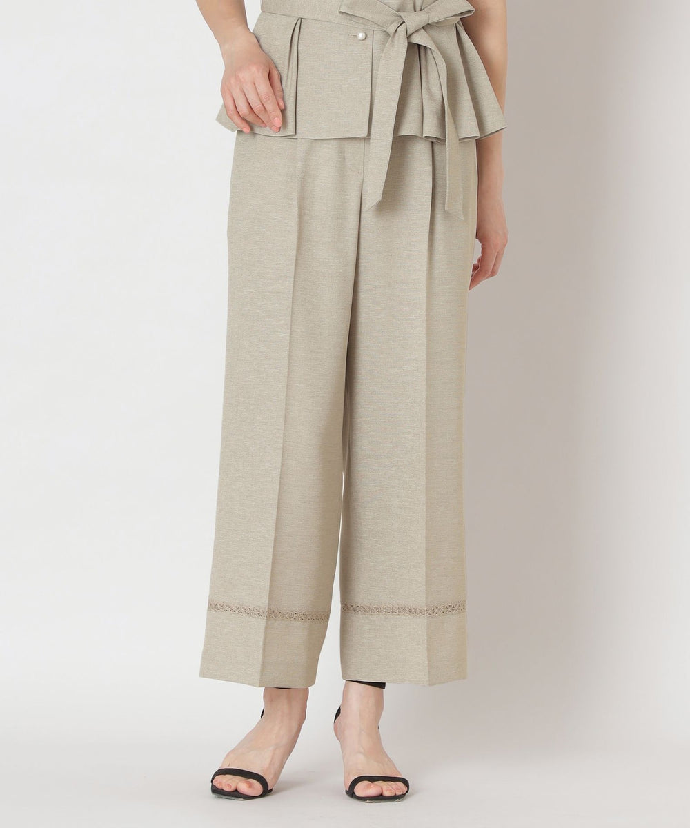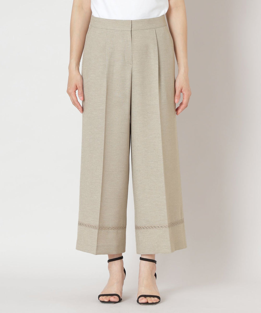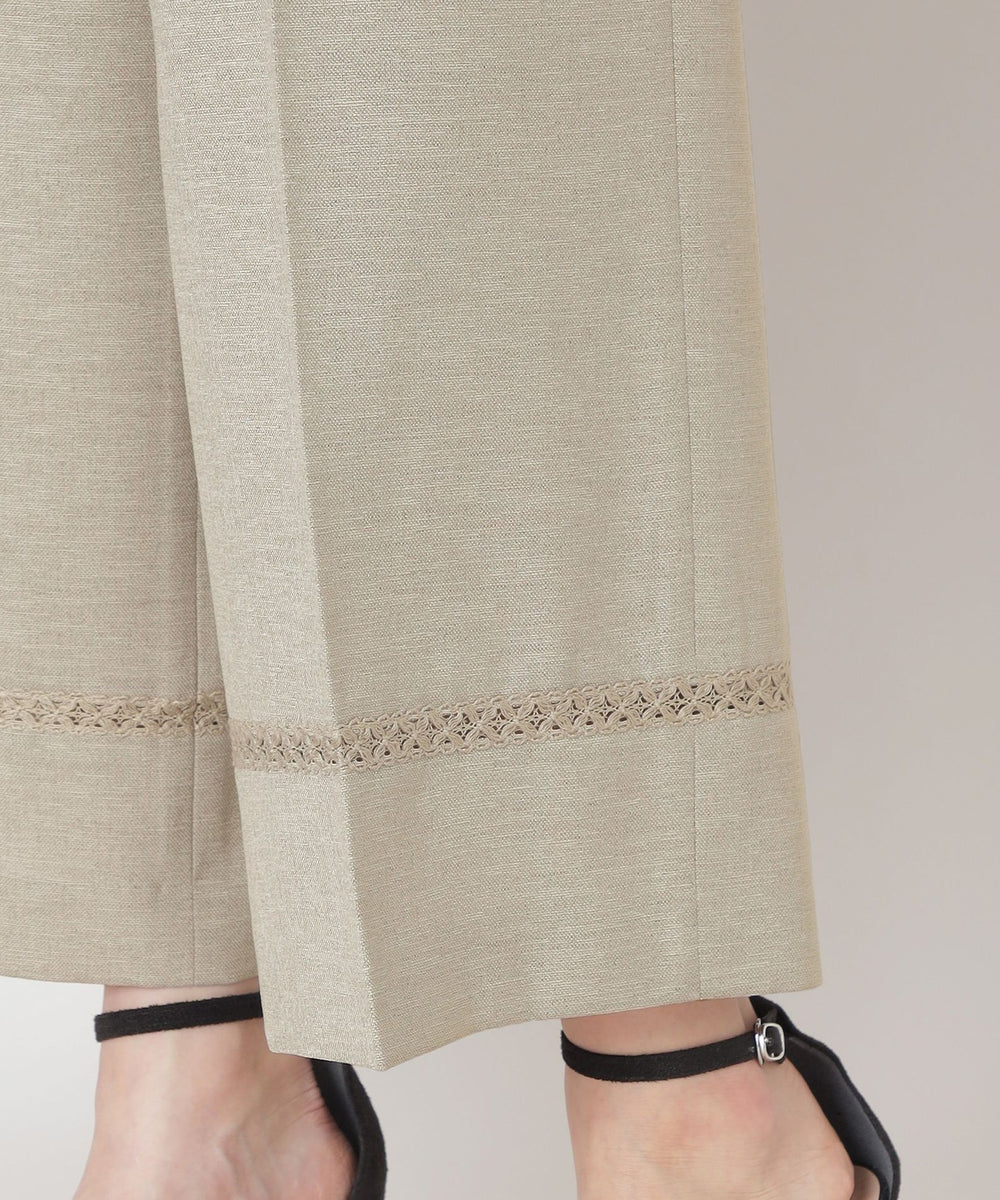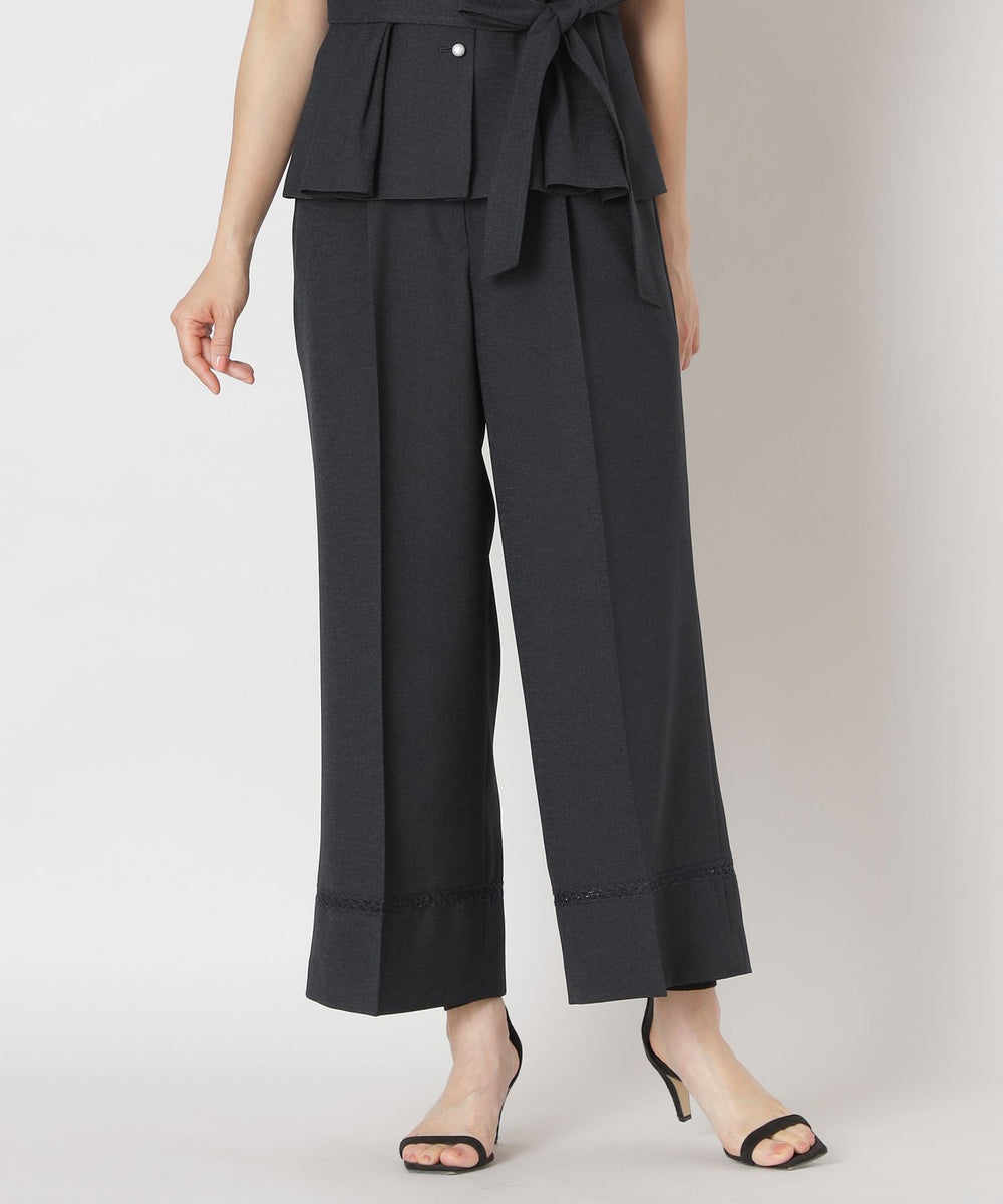 センタープレスを施した、上品なシルエットのワイドパンツ。裾にはピンタックとレースをあしらい、細部までこだわったデザインが魅力的なTO BE CHICオリジナルのエレガントなワイドパンツです。