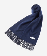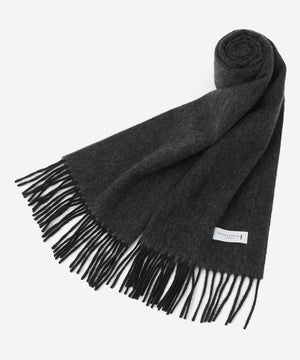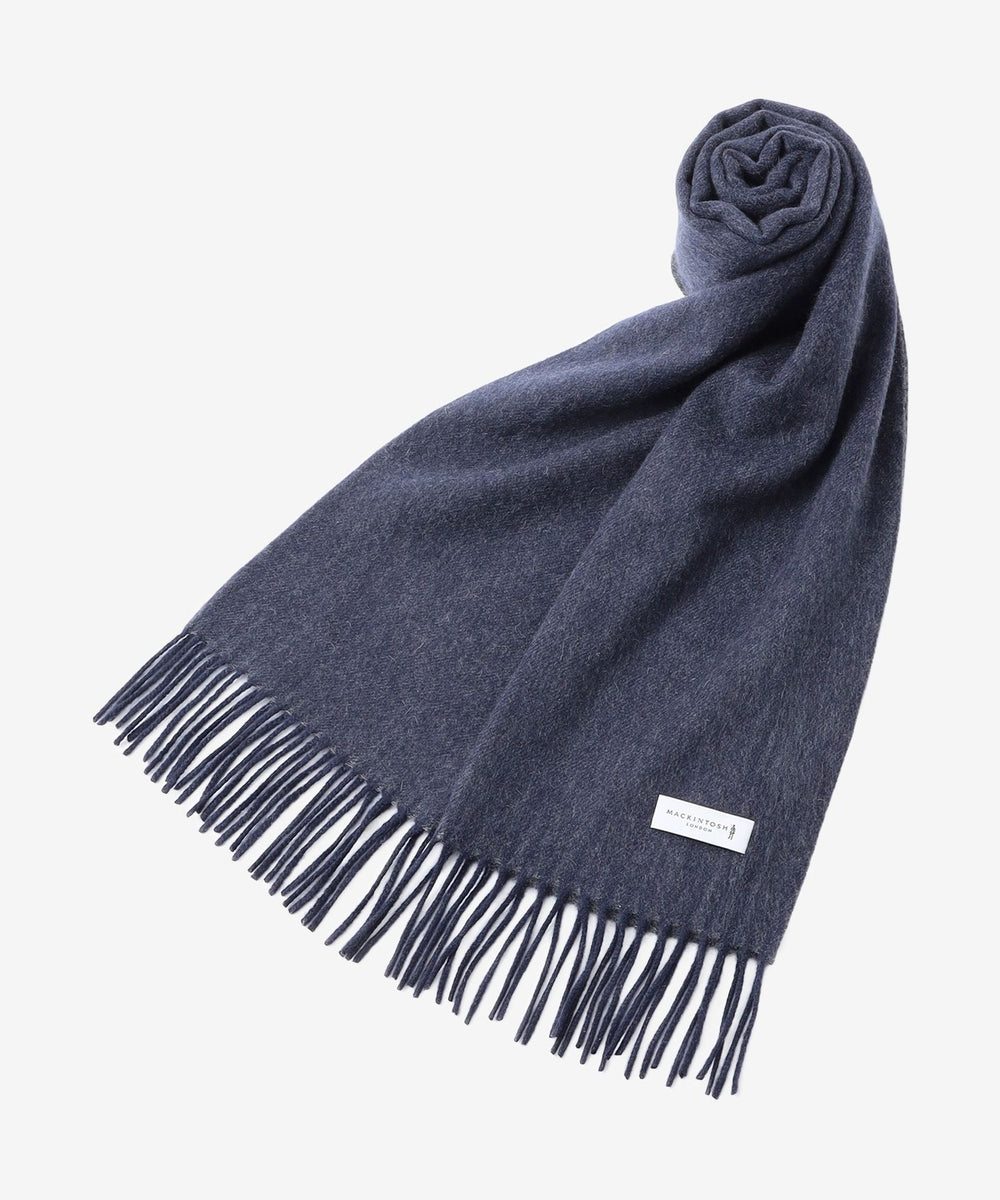 ベビーカシミヤ素材を使用。ベビーカシミヤとは、生後1年に満たない子山羊から採取される産毛のことを指し、通常のカシミヤよりさらに細い繊維径を有します。採取できるのは、冬の厳しい寒さから子山羊を守っていた産毛が自然と抜け落ちる、春から夏にかけてのごく短い期間のみで、一度に採取できる量はわずかという希少性の高い素材になります。この保温性の高さと軽さを誇るベビーカシミヤを贅沢に使ったマフラーは、まるで包み込まれるような柔らかさが最大の特徴です。