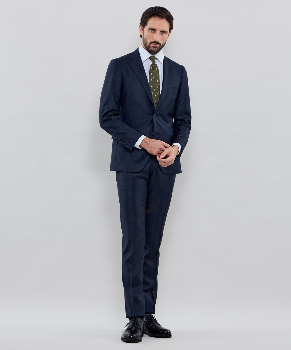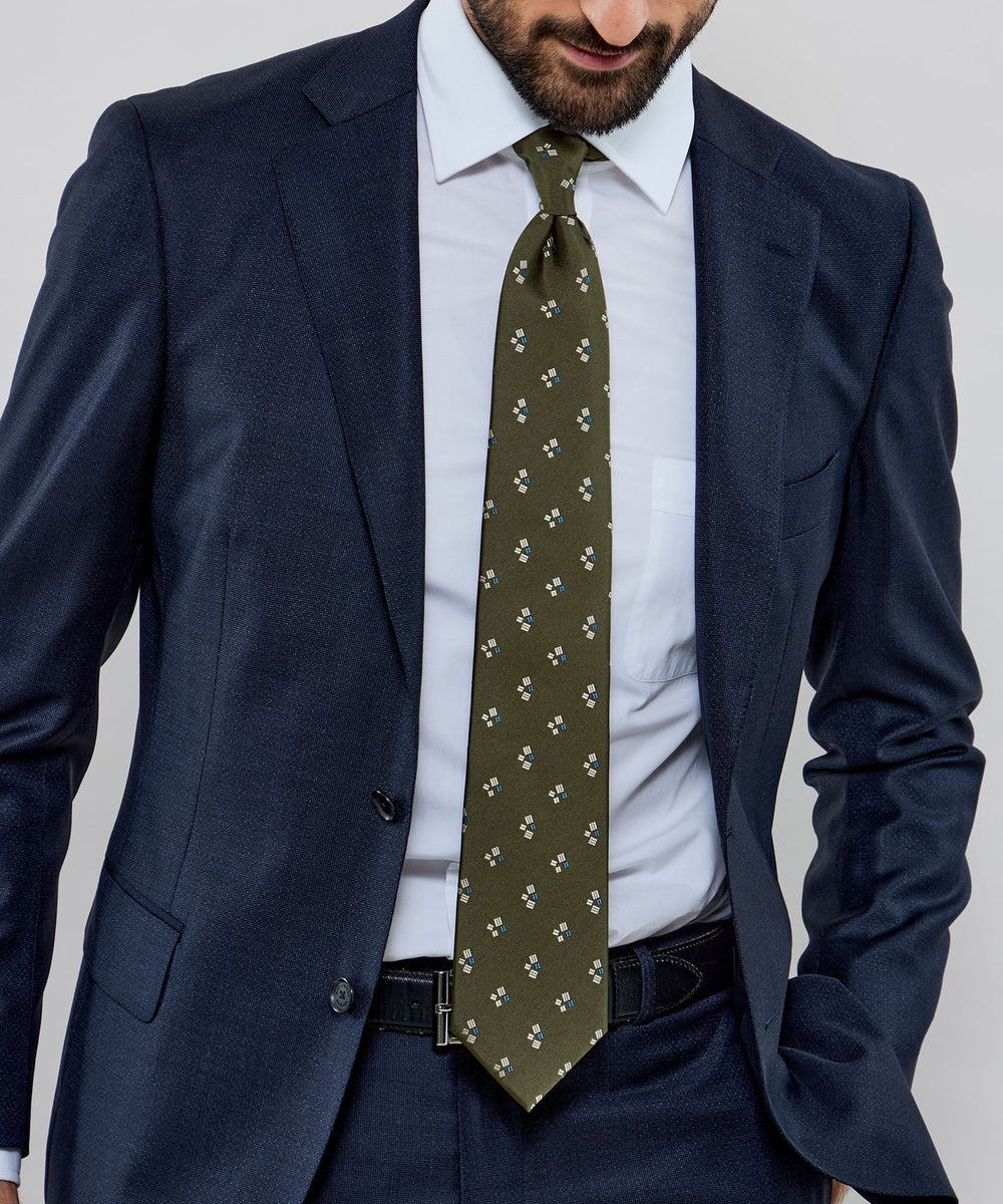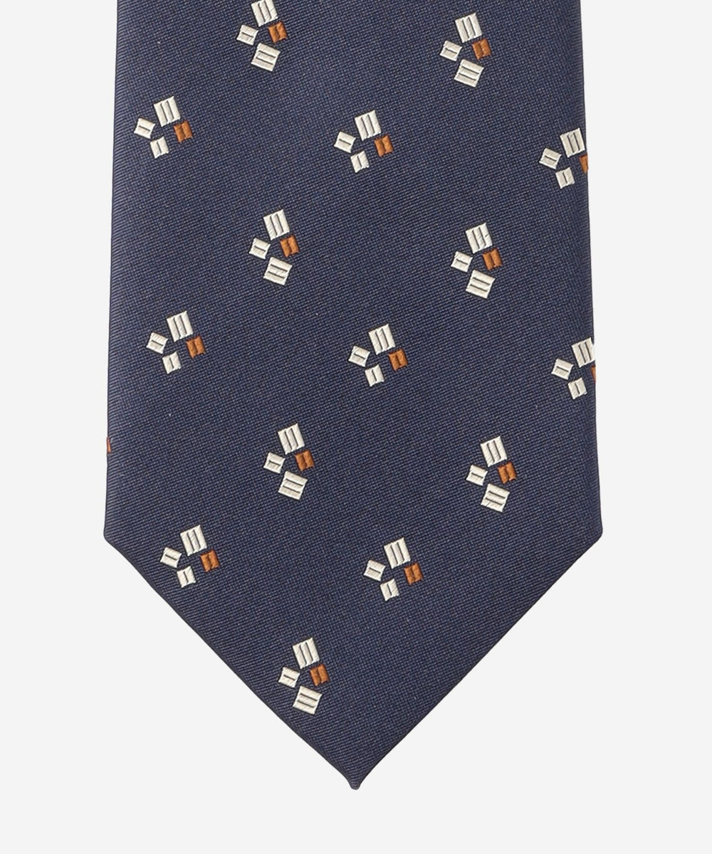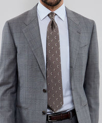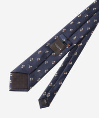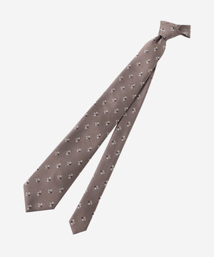 無地のベースに小紋を飛ばしたクラシックな印象のタイです。たっぷりとした糸使いでモチーフを立体的に表現してあり、クラス感が漂います。