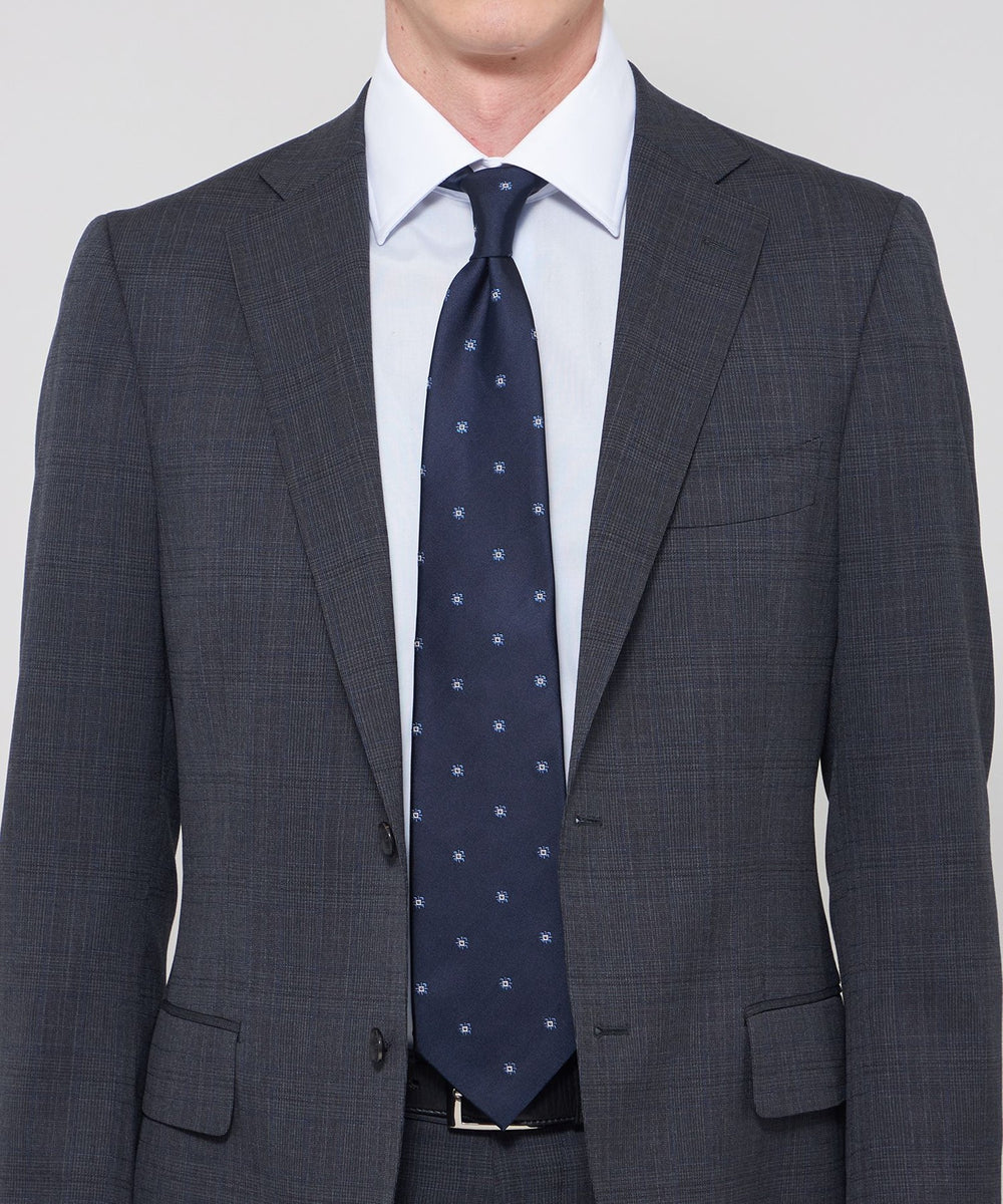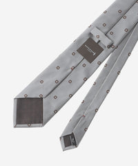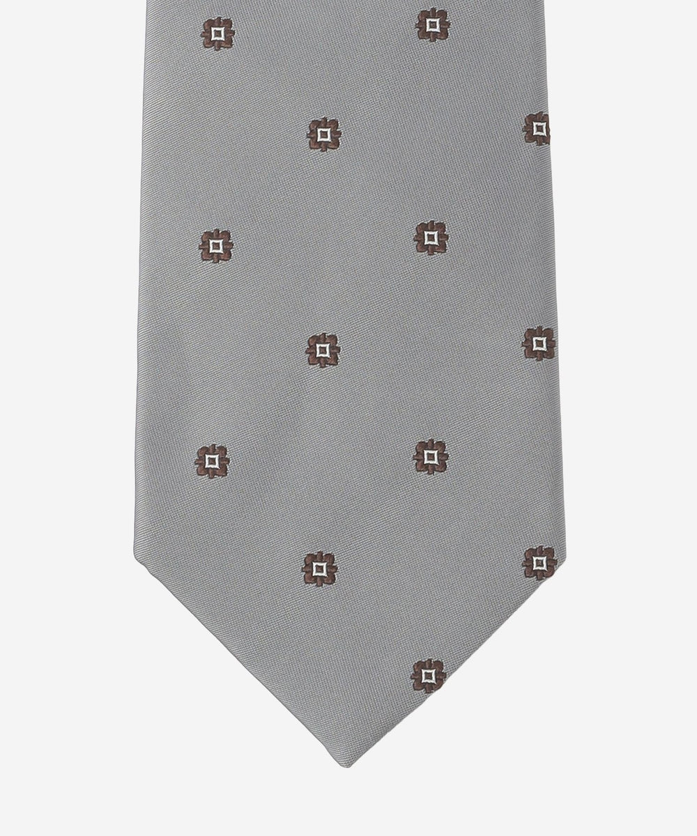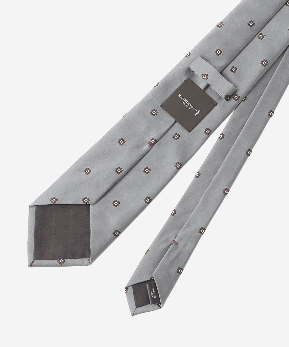 糸の風合いと光沢、発色を活かす為、あえて扱いの難しい甘撚りの糸を使用し、低速の織機で時間をかけて織り上げた小紋柄です。サテンのベースにモチーフを飛ばし、クラッシックな柄をジャガードならではの表現で立体感を持たせています。結びシワからの回復力に優れた、ウール100%のダブルクロスを芯に使用しています。