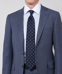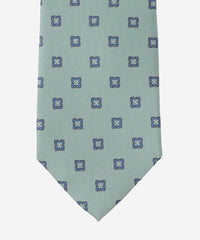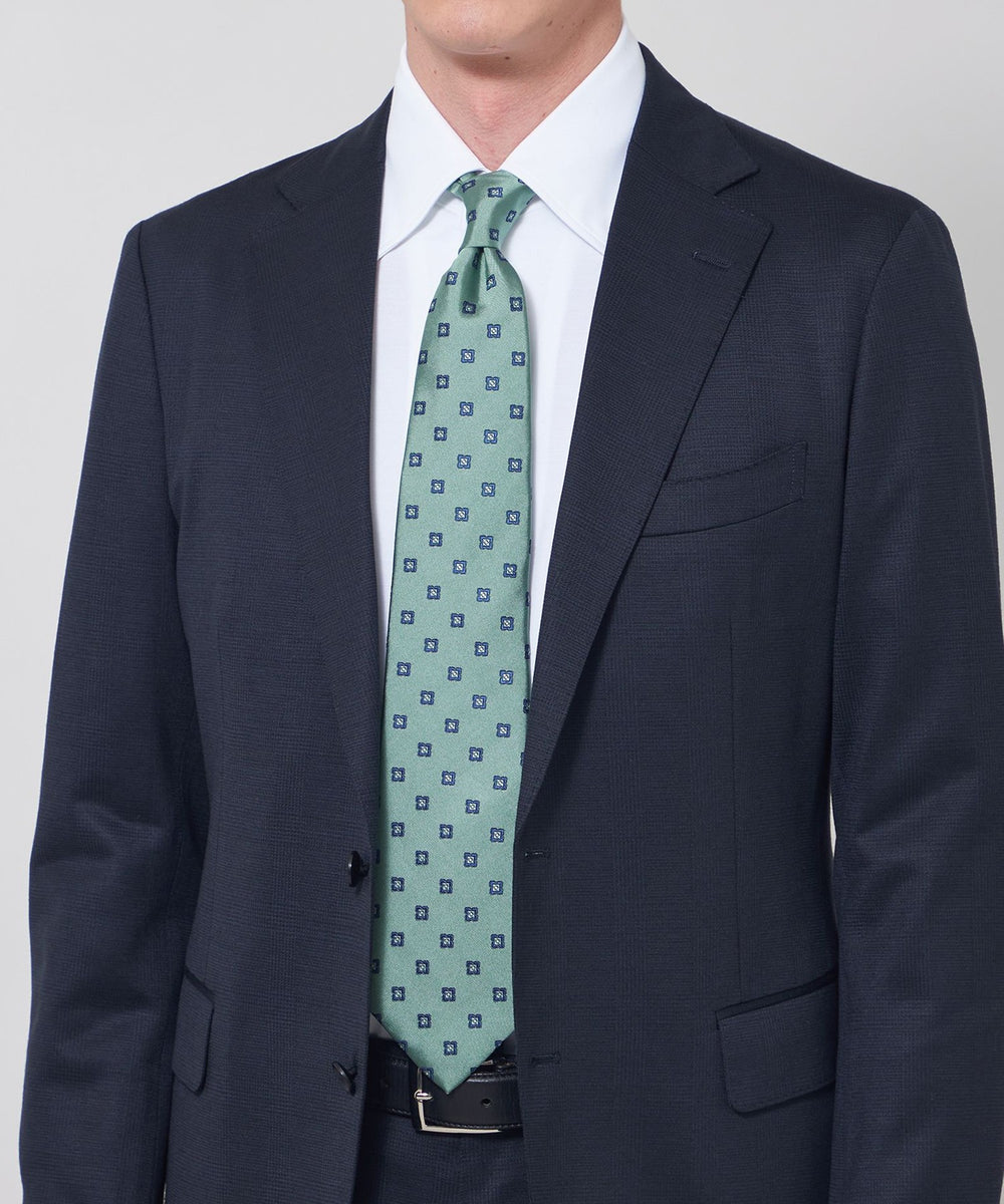 サテンのベースに花小紋を飛ばしたクラシックな印象のタイです。たっぷりとした糸使いでモチーフを立体的に表現してあり、クラス感が漂います。