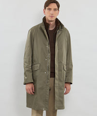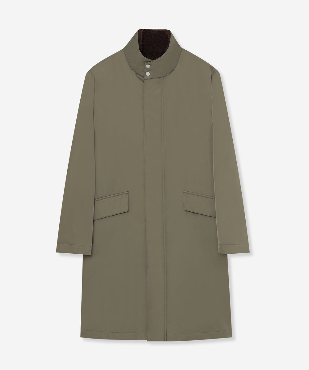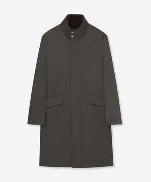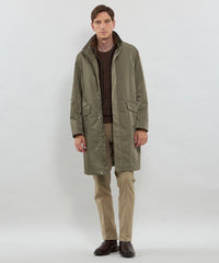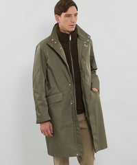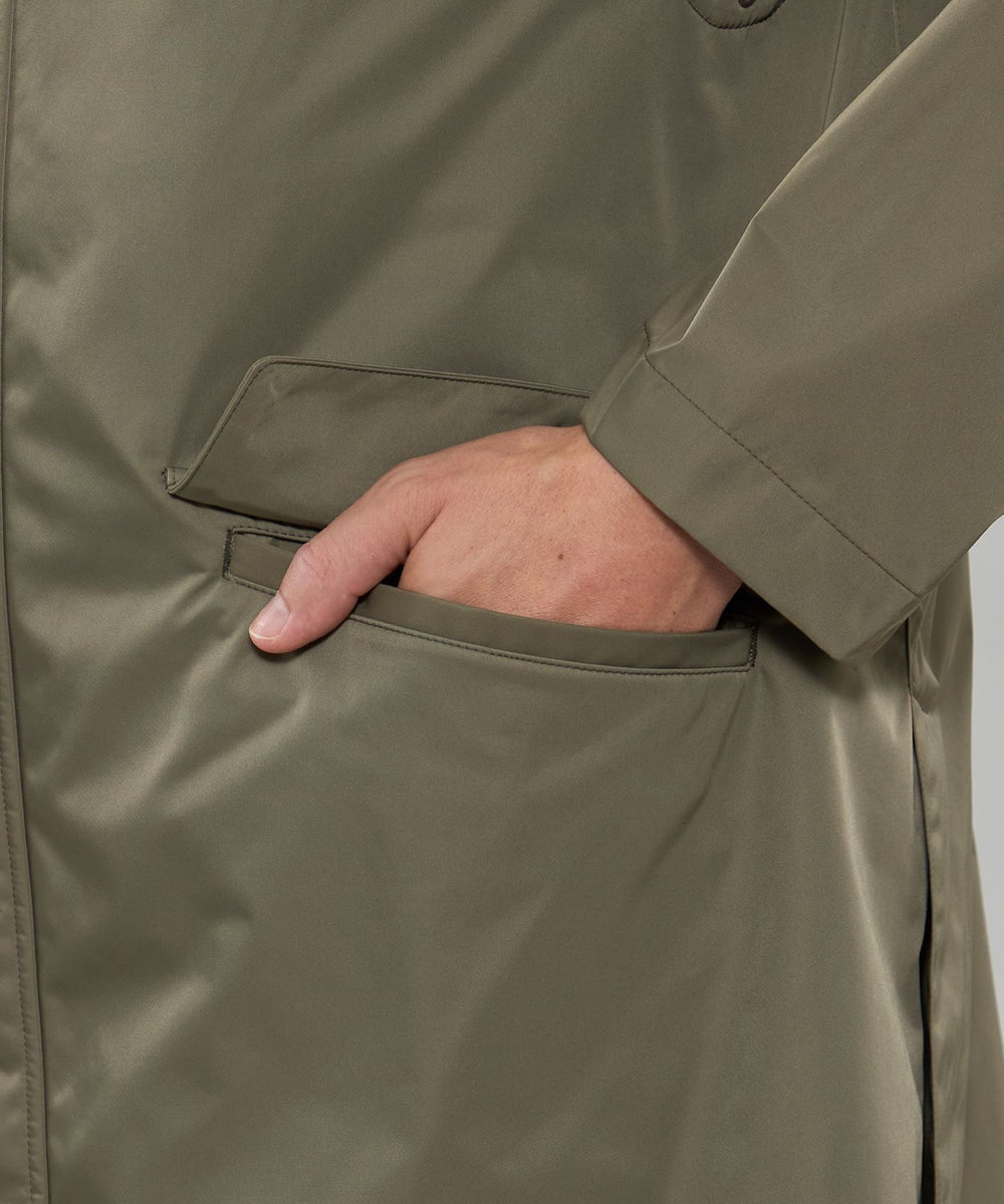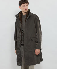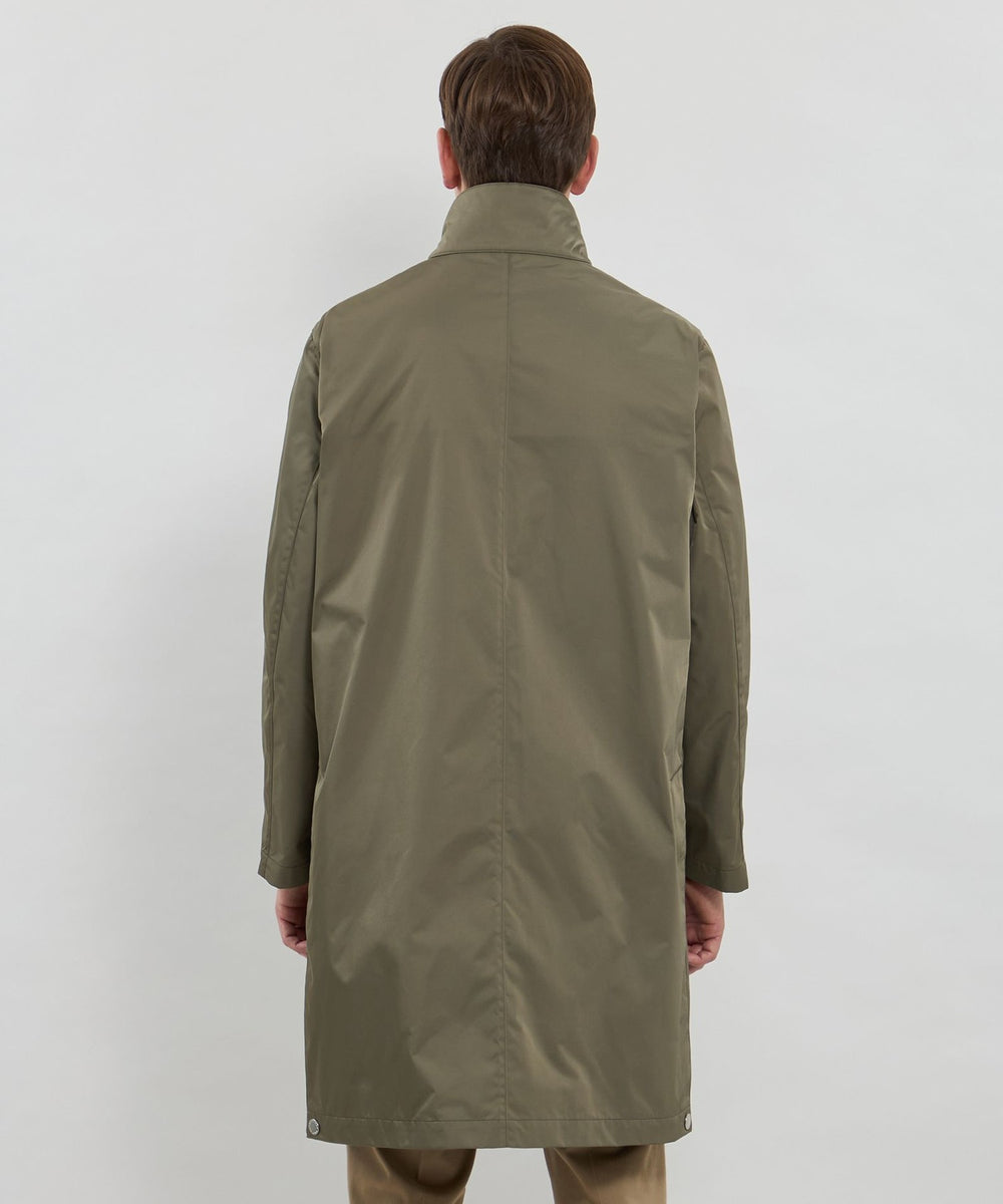 シグニチャーモデル『BILTON』。襟を高めにし雨風に対しての耐性と襟の返りが綺麗に開くよう設定したスタンドカラーコートです。乗馬用コートモデルにあるサイドベントを装備し足さばきも良くしています。シルエットはゆとりのあるAラインでラフに羽織りやすくスタイリングしやすいモデルです。