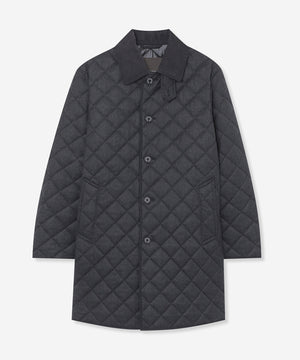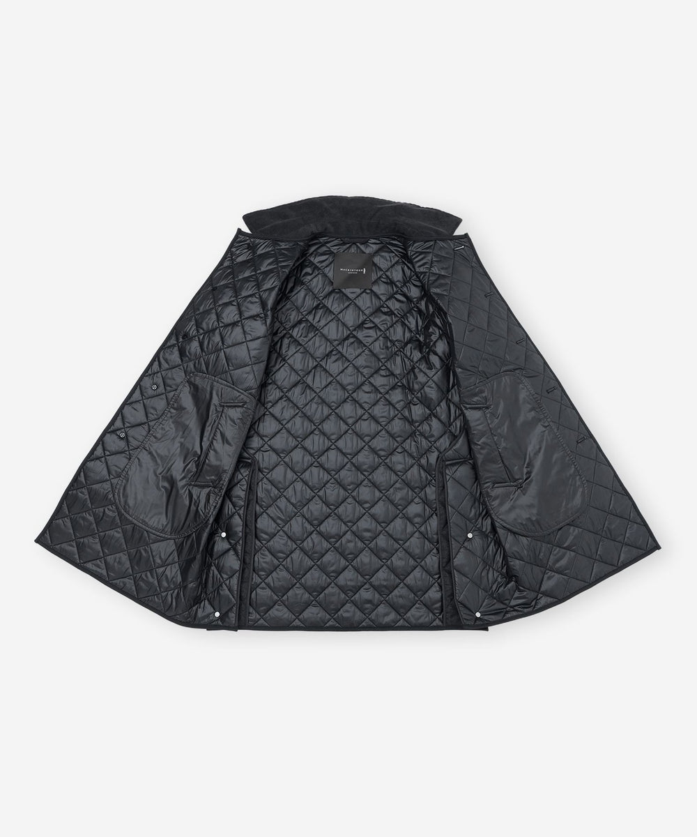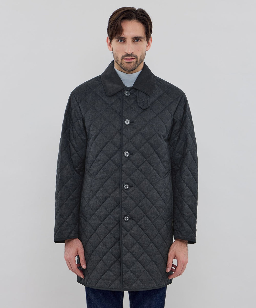 シグネチャーモデル『WATSON/ワトソン』の兄弟モデル、『WATSON LONG』。『WATSON』の佇まいを継承し、85cmレングスのコートパターンにアップデート。防寒性に優れたキルティングコートです。