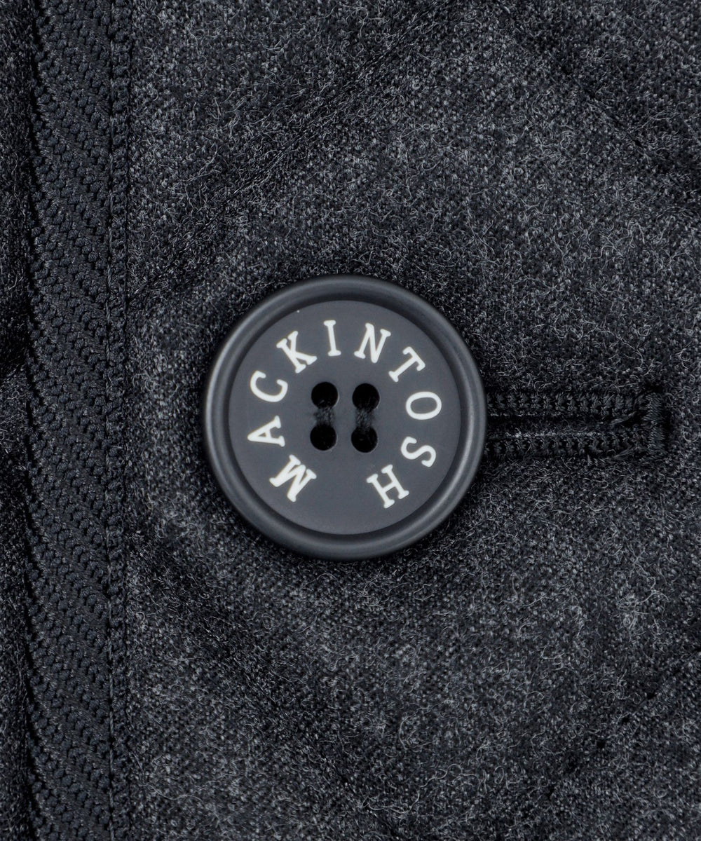 SUPER110S原料(18.0マイクロン)を使用した素材です。減耗の良さからくるきめ細かくなめらかな肌触りと艶感があります。丁重な縮絨加工を施し温かみのあるサキソニー素材に仕上げています。その生地を表側に使用し中綿キルティング加工を施し軽量で防寒性のある素材に仕上げています。