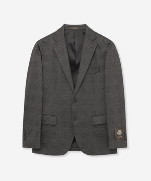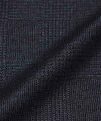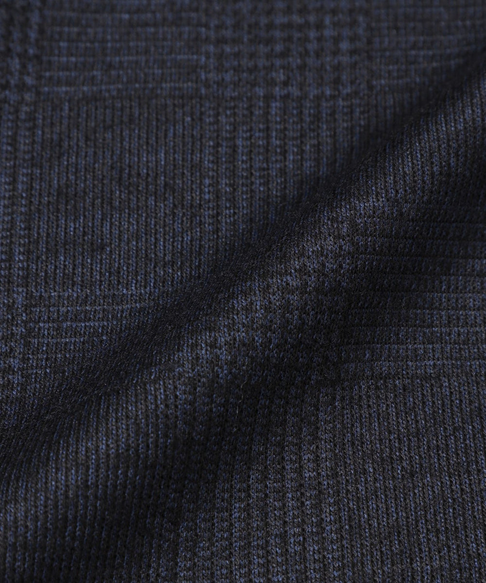 織物の生地のように繊細に編み上げたグレンチェックパターンのジャージ素材です。ミルドシルキー加工により軽量でありながら、ウールリッチな艶感があるエレガントな雰囲気ある素材に仕上げています。ジャージー素材ならではの柔らかさと伸縮性を持ち合わせています。