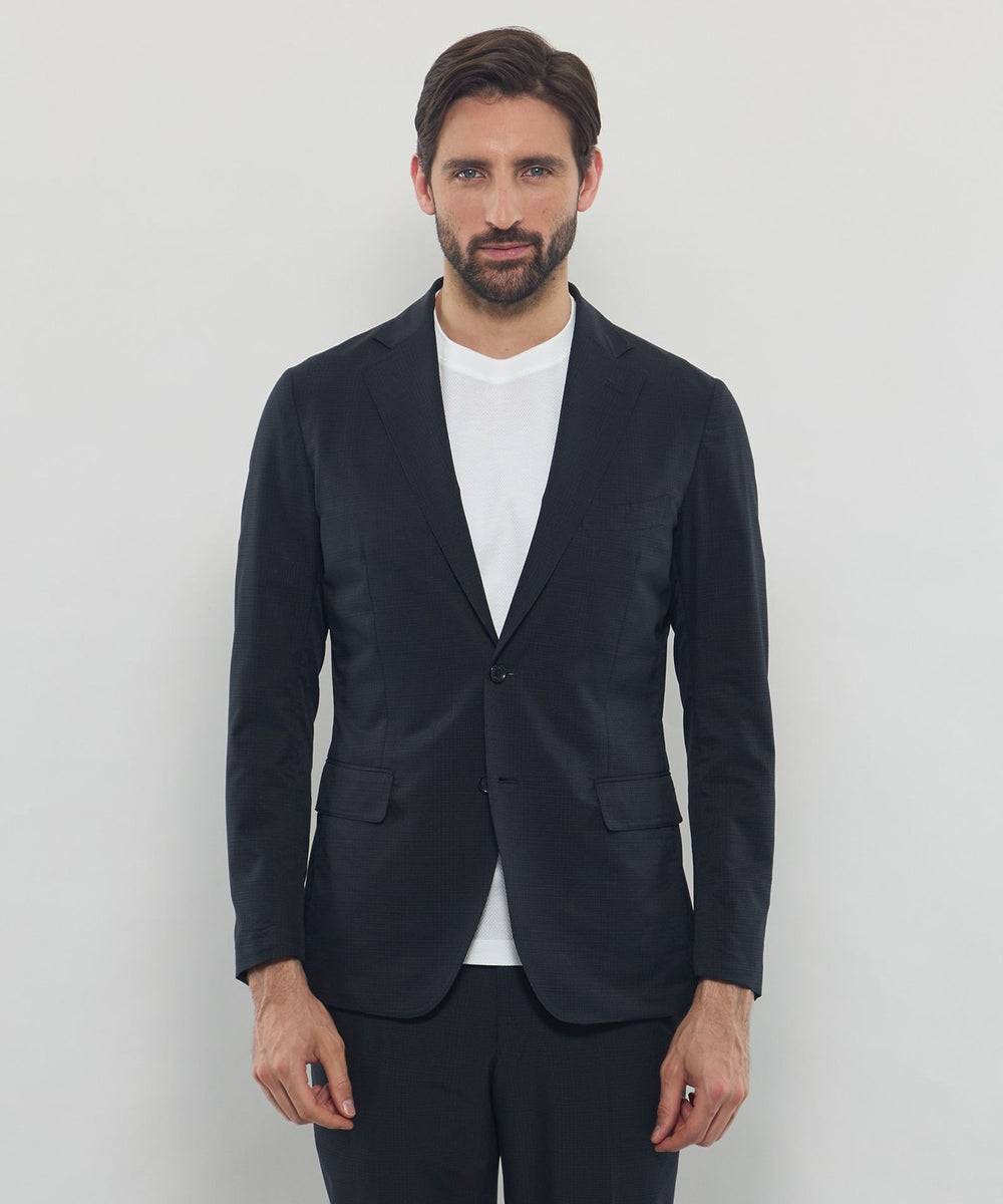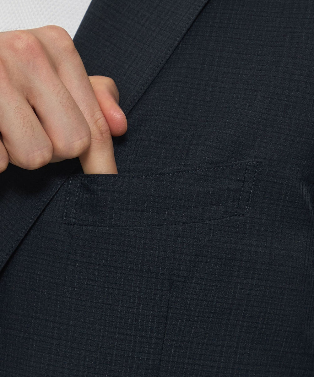 機能性を追求した「Breasy Jacket」シリーズ。正統派の上質なジャケットでありながら、家庭での手洗い洗濯を可能にした今までにないセットアップシリーズです。脇下にデオドラントテープを配しています。(G1R49-505とセットアップ可)