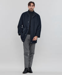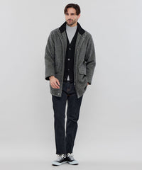 ボリュームがあるシルエットが特徴のスタンドアウター【Ettrick(エトリック)】。襟裏にコーデュロイ素材を使用し、襟元の温かさと肌触りに配慮したデザインになっています。英国らしいミドルレングスアウターです。