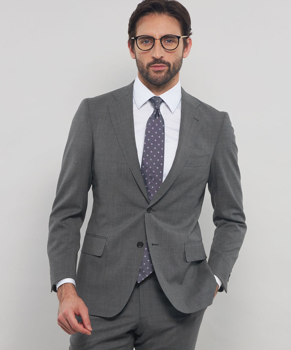 品質と耐久性のバランスが取れたSuper110's(18.25μm)の原毛を使い繊細に織られたオーセンティックなグレンチェックです。