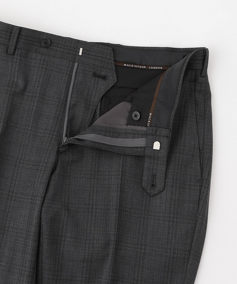 希少なSuper150's(16.0μm)の原毛を使い繊細に織られた素材です。上品な光沢、細番手使いならではのとろみとしなやかさが特徴です。連続するウインドペンで表現されるコンビネーションチェックです。