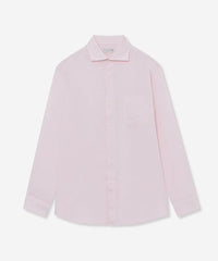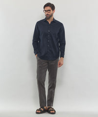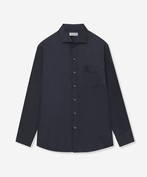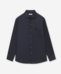 ワイドカラーの長袖カジュアルシャツです。定番型と同じレギュラーフィットになります。左胸にダンディマン刺繍が入ります。1枚で着てもサマになり、ジャケットインでもきれいに収まる夏に使いやすいアイテムです。生地の柔らかさを出す為、製品に洗いをかけています。