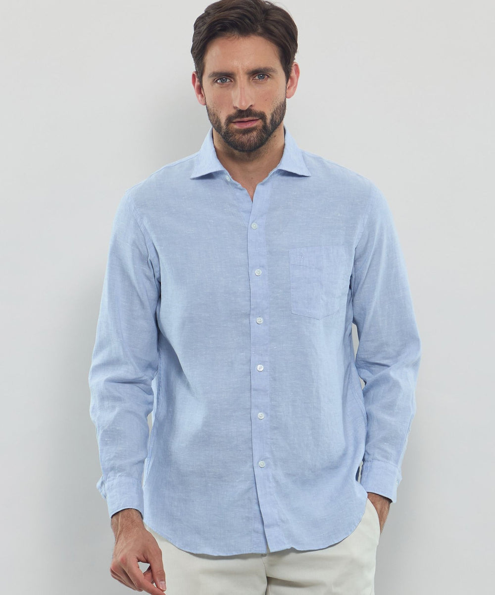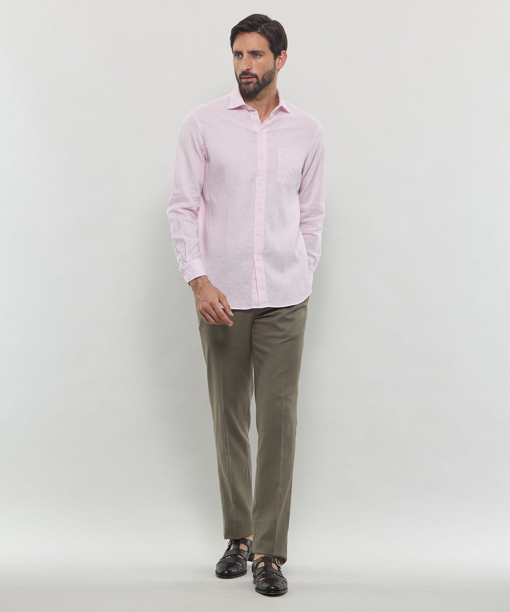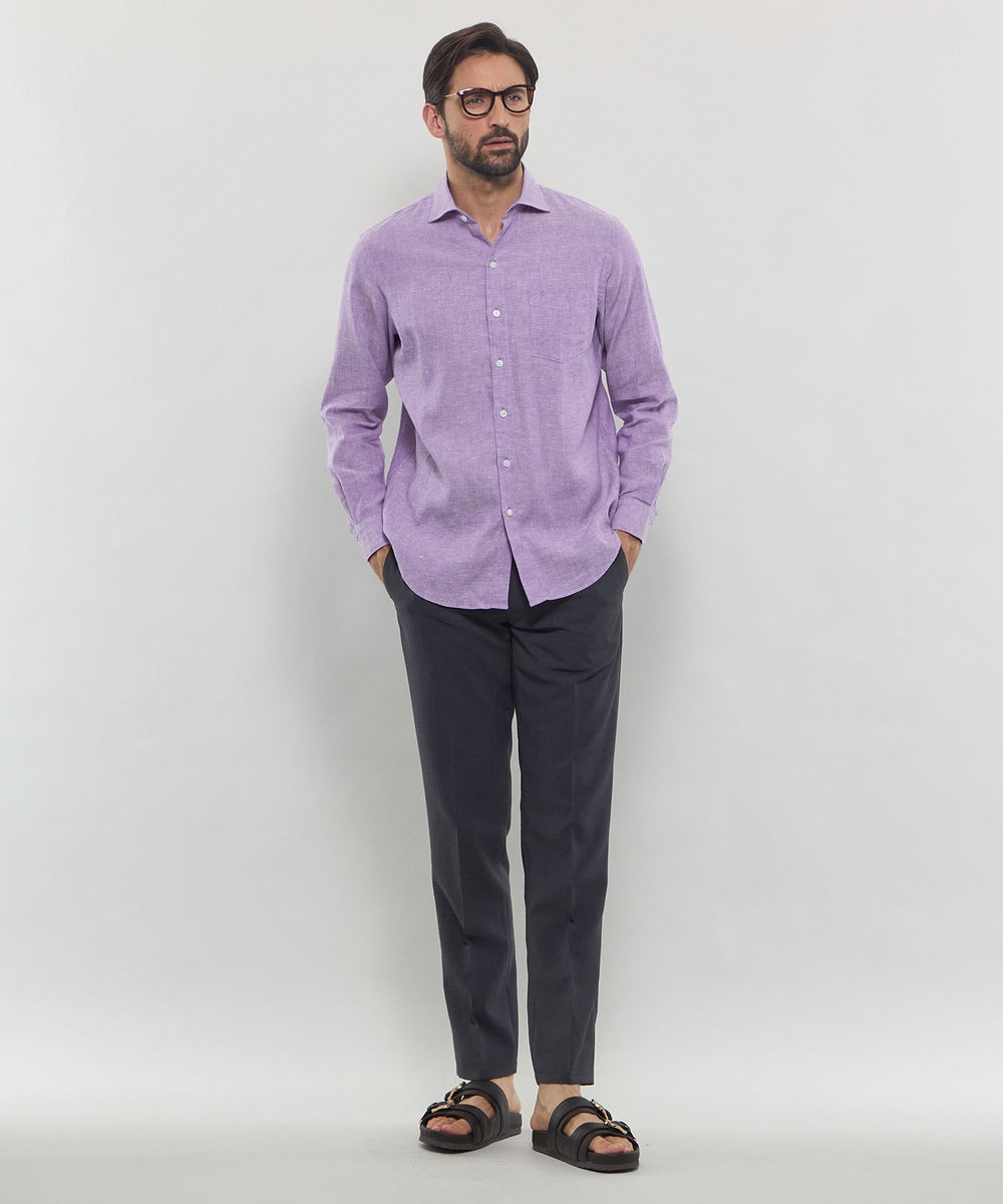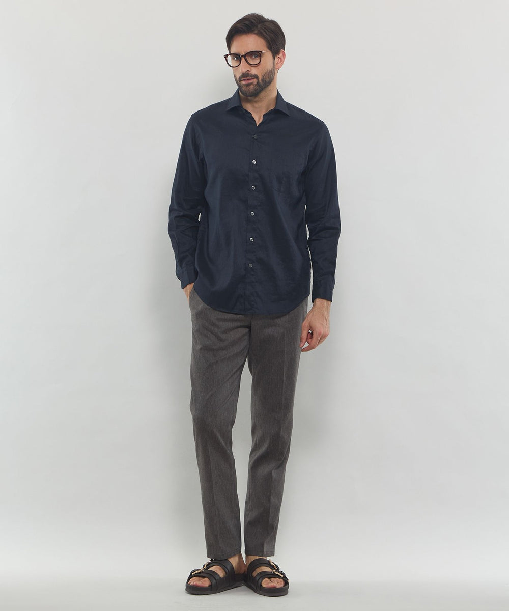 【LEON掲載】ストレッチリネンワイドカラーシャツ