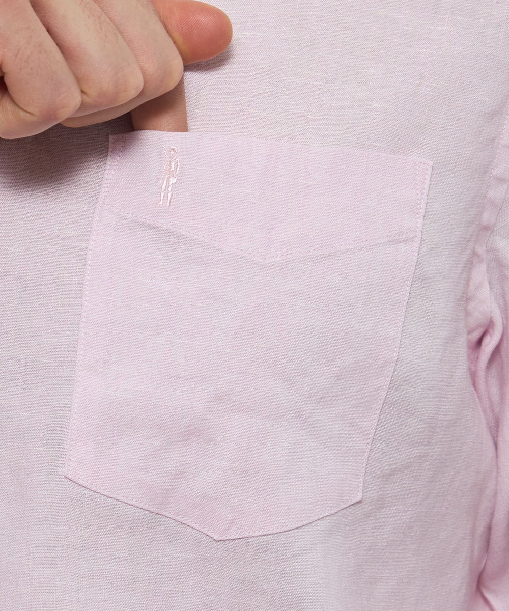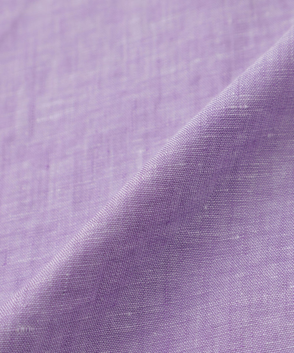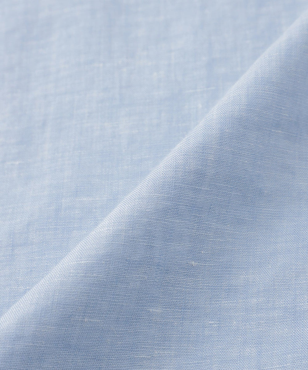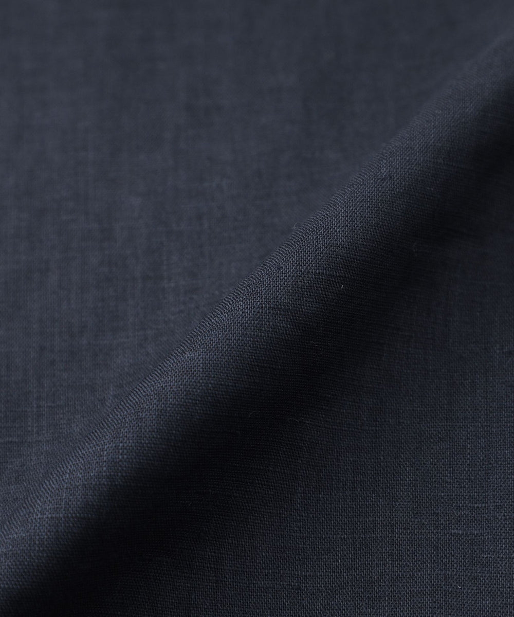 日本最古のリネンテキスタイルメーカーが開発したリネンシャンブレーを採用しています。従来の方法では、ストレッチ性を持たせようとすると、どうしても麻らしい風合いが薄れ、重量感が出てしまうデメリットの改善に成功。研究を重ねた特殊な紡績方法でリネンとストレッチ糸を紡績した糸を織りあげることで、エアリーな麻の風合いはそのままに、程良いストレッチ性を兼ね備えたリネン素材が生まれました。リネン素材は良質なフレンチリネンの原料メーカーSAFLIN(サフィラン)社を使用。先染めのシャンブレー生地でMACKINTOSH LONDONの別注カラーをオーダーしました。