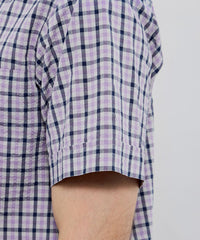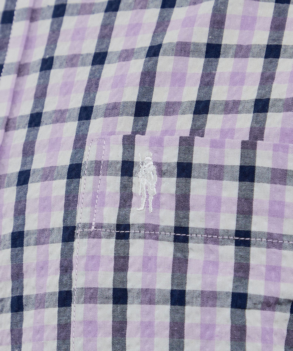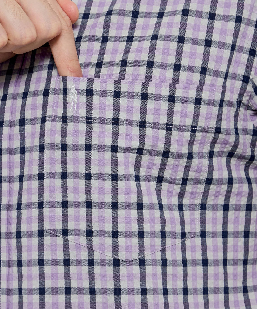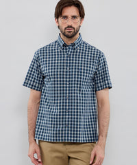 シアサッカーリネンギンガム 半袖ボタンダウンシャツ