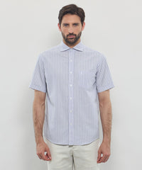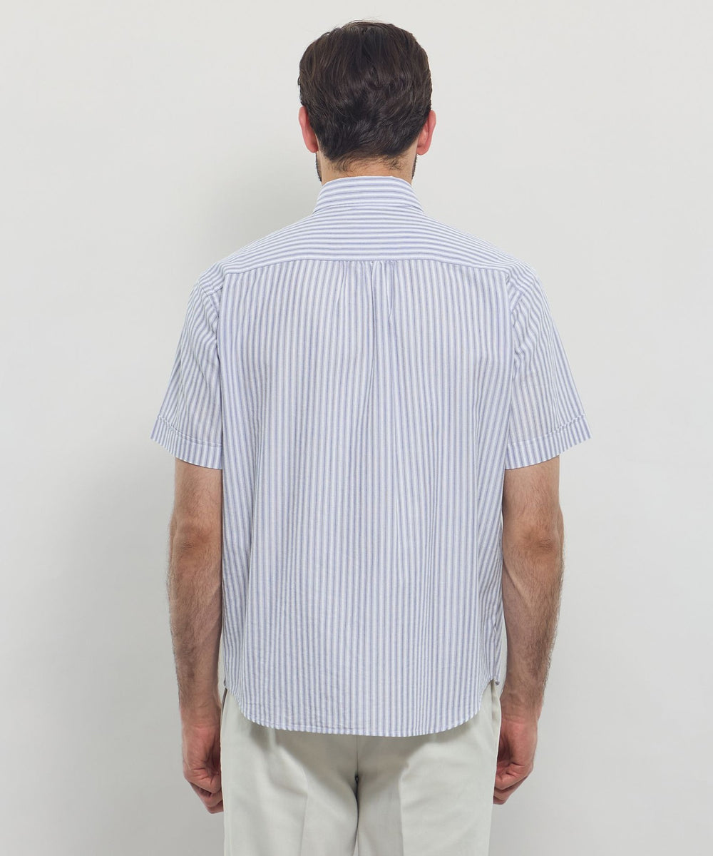 パナマサッカーストライプ 半袖ワイドカラーシャツ