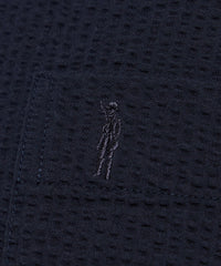 アメリカ原産の綿を100%使用したサッカーです。90年代に製造されたヴィンテージの素材を分析してオリジナル糸を作り、太さや密度を忠実に再現しました。アメリカの綿の特徴であるドライな風合いが魅力です。凹凸感があり、肌離れも良く通気性に優れている夏に最適な素材です。