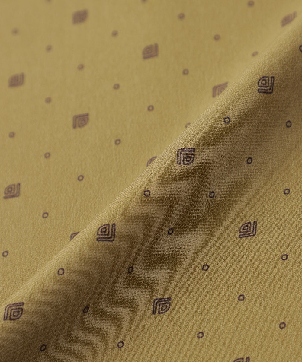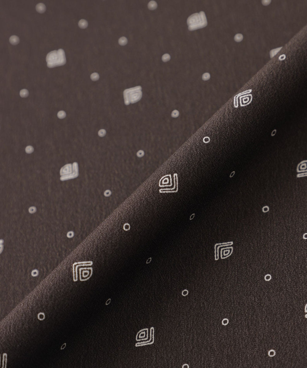 日本の縮緬素材を模してフランスで開発された『デシン』は軽さと程よいドレープ感のある素材です。ポリエステル100%の日本製デシンにオリジナルの小紋柄をプリントしました。一見繊細な生地に見えますが、ポリエステルで出来ている為、シワになりづらくケア性の高い素材です。
