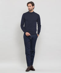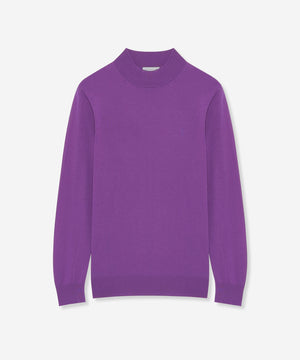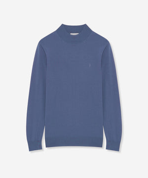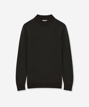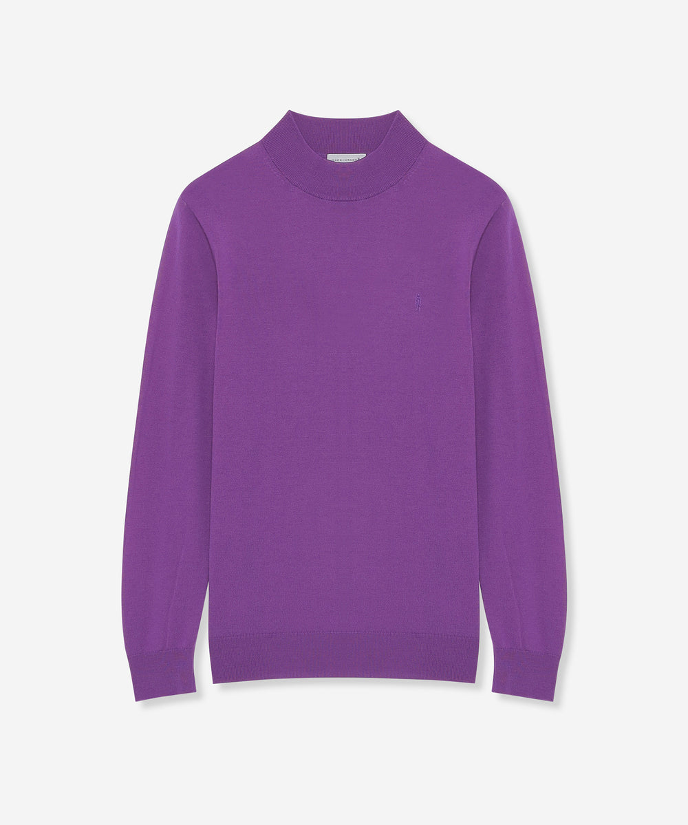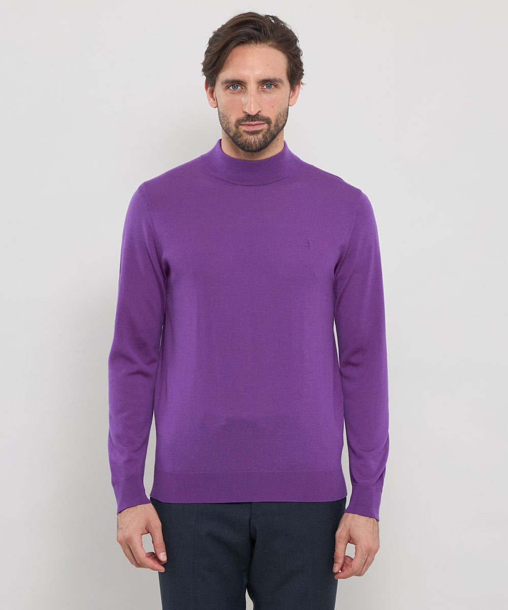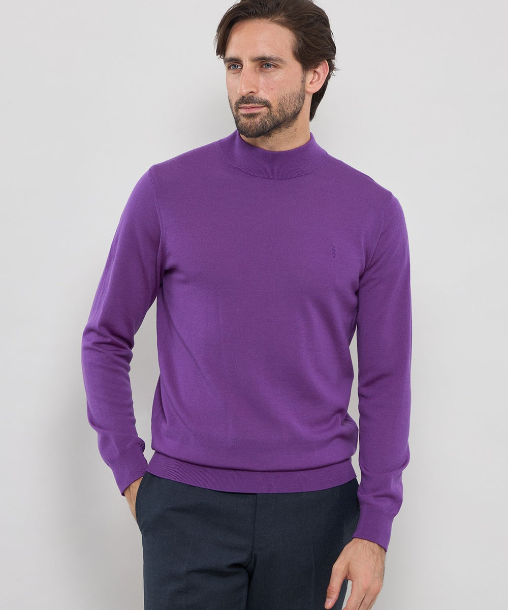 ベーシックなモックネックのニットはテーラードの考えを取り入れ、立体的な設計に変更しています。身体の形状に合わせてパターン形状、分量感を細かく調整することで,シルエット、着用感が大幅にアップデートされました。肩の接ぎの縫い目をゼロにする特殊な縫製仕様など、パターンと合わせて細部まで、着用感に拘りました。ワンポイントで左胸にダンディマン刺繍が入ります。