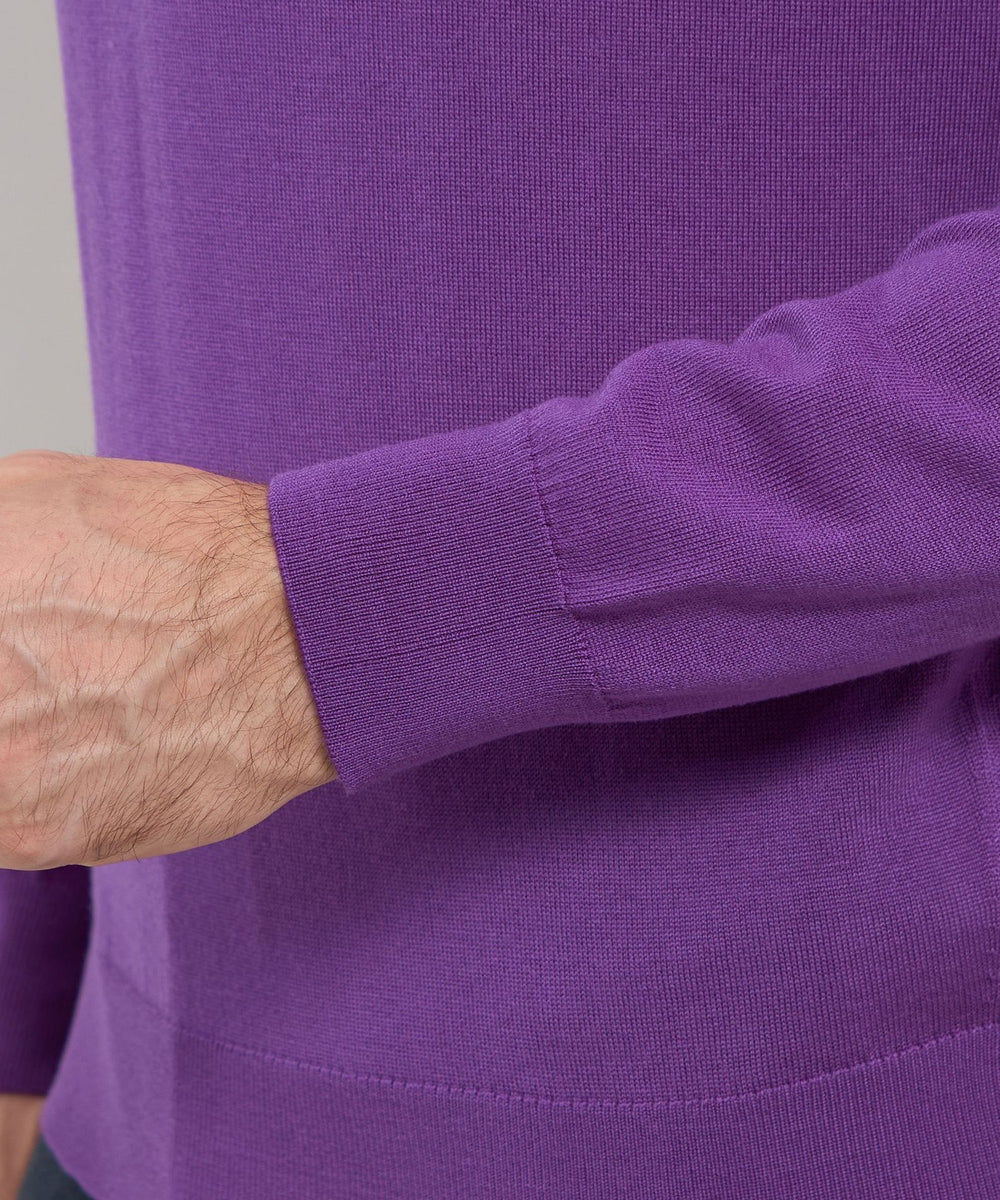 オーストラリア羊毛(ファインウール原料)を使用した防縮加工糸です。素材開発当初からイタリアの技術者と共に糸質・色・機能性、全ての面で世界トップクラスのウールニット糸を標榜し、完成されたウール100%のウォッシャブル素材です。風合いはよりソフトに温かみのあるウール本来の自然な素材感を大事にした極上の糸をハイゲージの天竺に仕上げました。