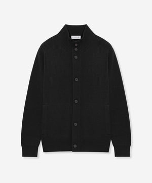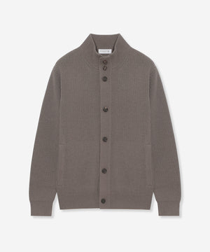 レギュラーフィットのスタンドカーディガン。腰部分には便利なポケットを配し、機能性とすっきりとしたデザインを両立させています。