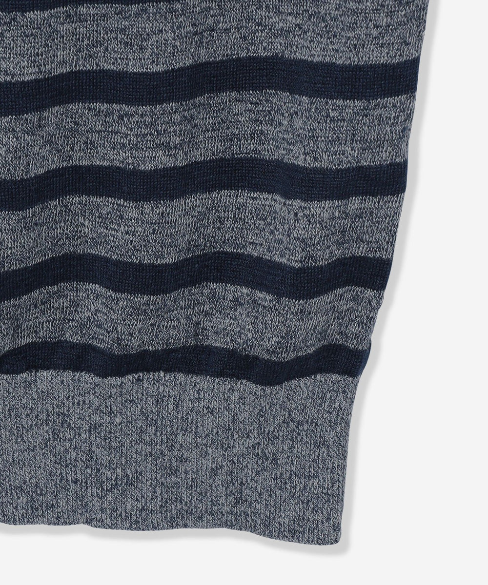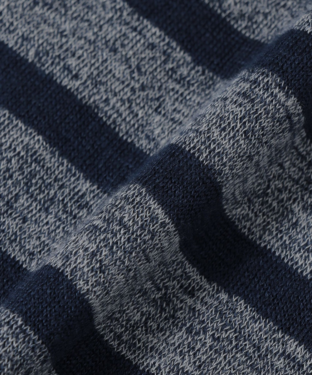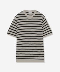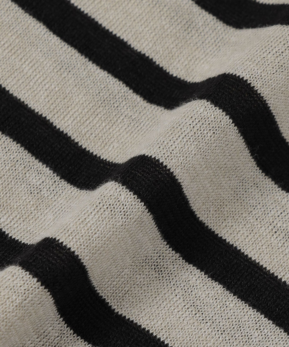 レギュラーフィットの半袖クルーネックプルオーバーです。シンプルなボーダー柄で1枚で着てもサマになる大人のニットTシャツです。