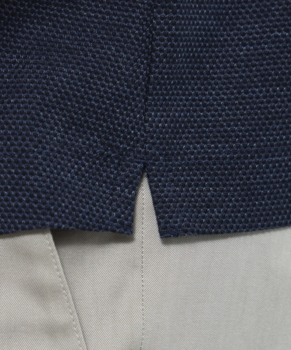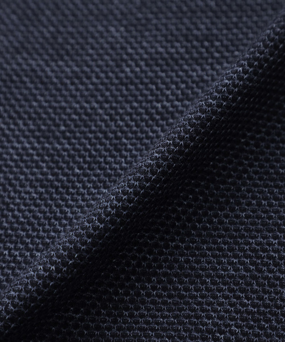 細番手の糸を蜂の巣のようなハニカム状にゆっくりと編み立てることで、ふんわりとしなやかな唯一無二の生地が完成しました。色ごとに最適な染色方法を選択しており、表情がそれぞれ異なります。また、シルケット加工により滑らかで地艶感のある仕上げを施しています。