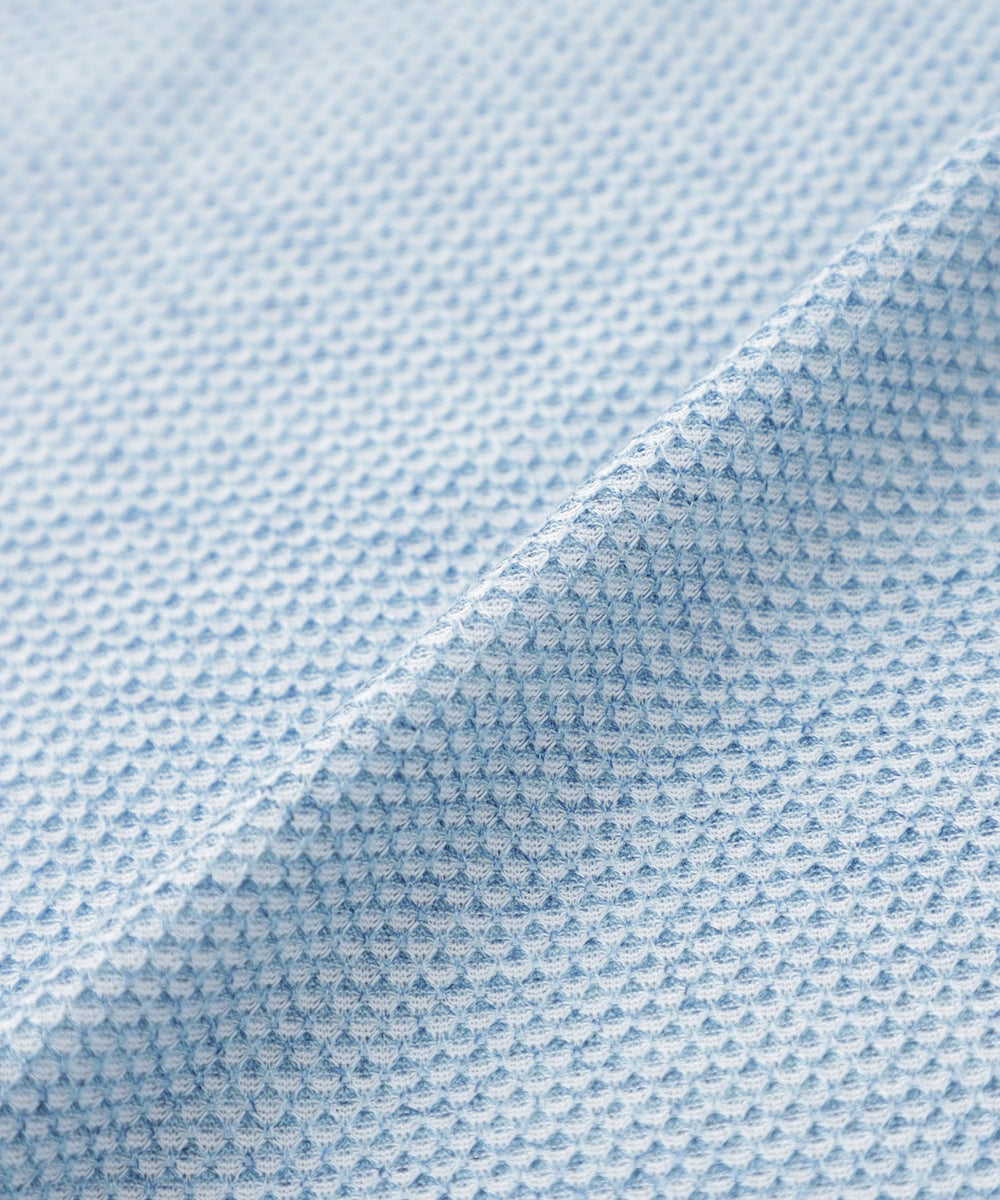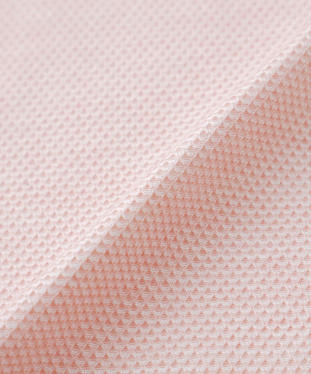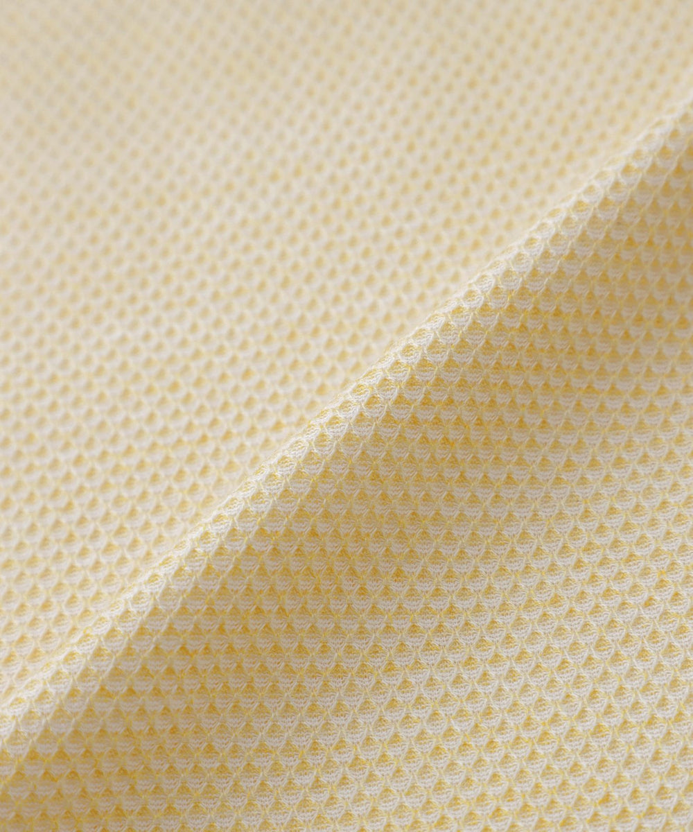 細番手の糸を蜂の巣のようなハニカム状にゆっくりと編み立てることで、ふんわりとしなやかな唯一無二の生地が完成しました。職人の手作業でしか出来ない特殊な染色方法で染め付けた糸を使用することで、他にはない奥行のある繊細な色目の生地になります。また、シルケット加工により滑らかで地艶感のある仕上げを施しています。