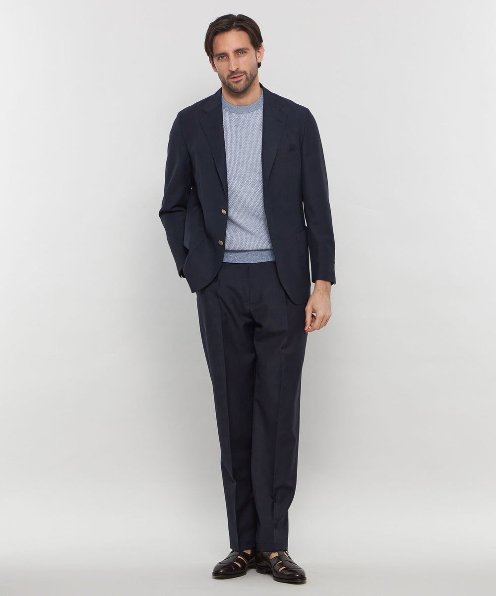 フランスのエスプリとエレガンス、イングランドの伝統と格式が同居する高級服地ブランドです。世界最古の生地マーチャントとして多くの顧客から高い評価を得ています。ドーメルを代表する春夏素材「トニック」はモヘヤブレンドの最高級品ですが、日本の高温多湿の環境には若干ヘビーウエイトでした。そこで、300g/mの目付から250g/mへの軽量化を直接依頼し、ブランドオリジナル素材として誕生したのが「スーパーライトトニック」です。
