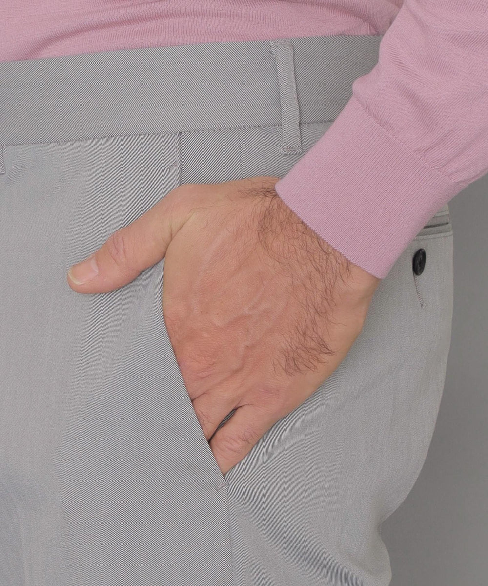 余分な装飾を排除したマッキントッシュ ロンドンのミリマルな世界観を体現する定番トラウザースです。膝から裾に向かってストレートなシルエットを採用し、レッグラインをスマートに演出します。