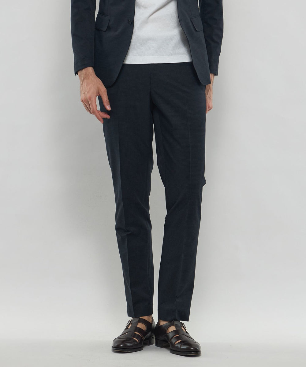NEW BRIDGEモデル30型ジャケットに合わせたノープリーツテーパードシルエット。定番の35型に比べ、股上が低く、渡りがあり、裾がすっきりとしたラインが特徴です。ストレッチ性が良く、マルチ方向に伸縮性があるので着用時にストレスがありません。(G1E23-505とセットアップ可)