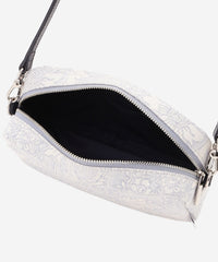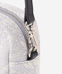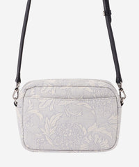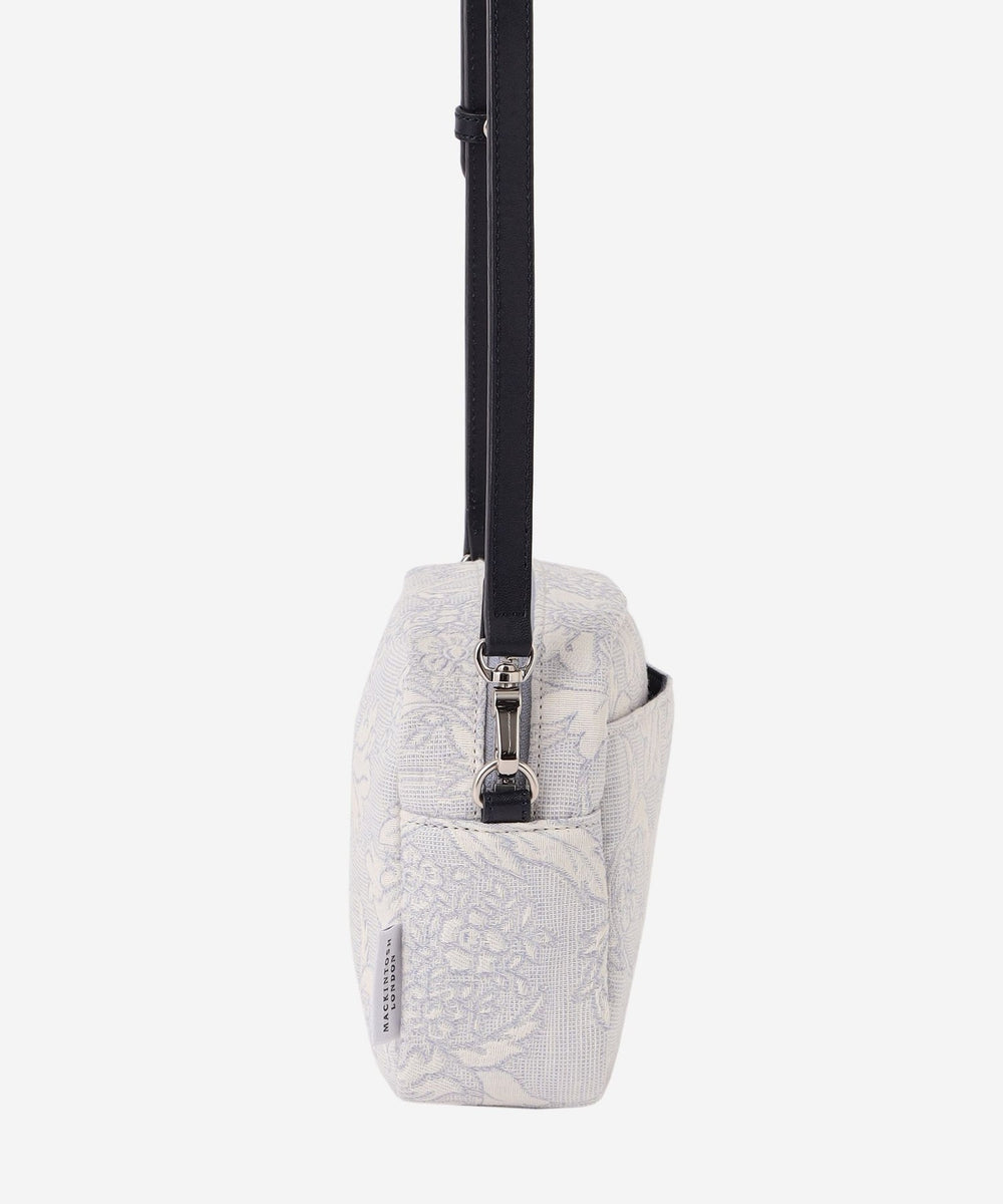 バイブリーフラワージャガードのショルダーバッグです。ナチュラルな風合いの綿麻の生地はFabrica社で織られています。生地と革には撥水加工を施しています。ファスナー開閉式。内側は弱撥水のナイロン地で、ポケットが1つ付いています。スマートフォンやミニ財布、ハンカチなどの小物が十分に入り、ショルダー紐を取り外せばポーチとしても使用可能。コロンと可愛らしくギフトにも最適です。共地のコート、スカート、トートバッグ、ポーチも展開しております。こちらの商品はオンラインストア限定商品です。