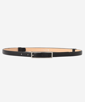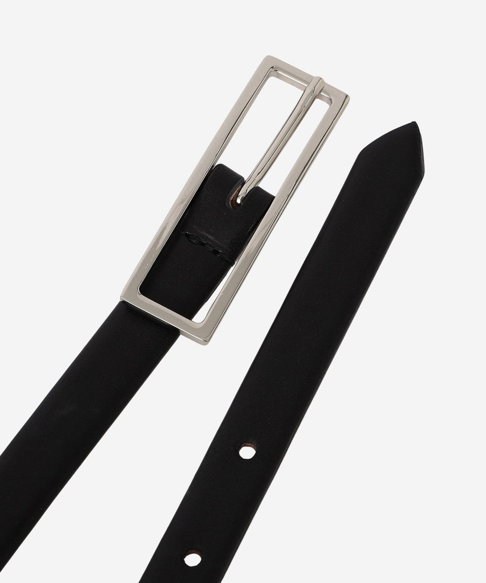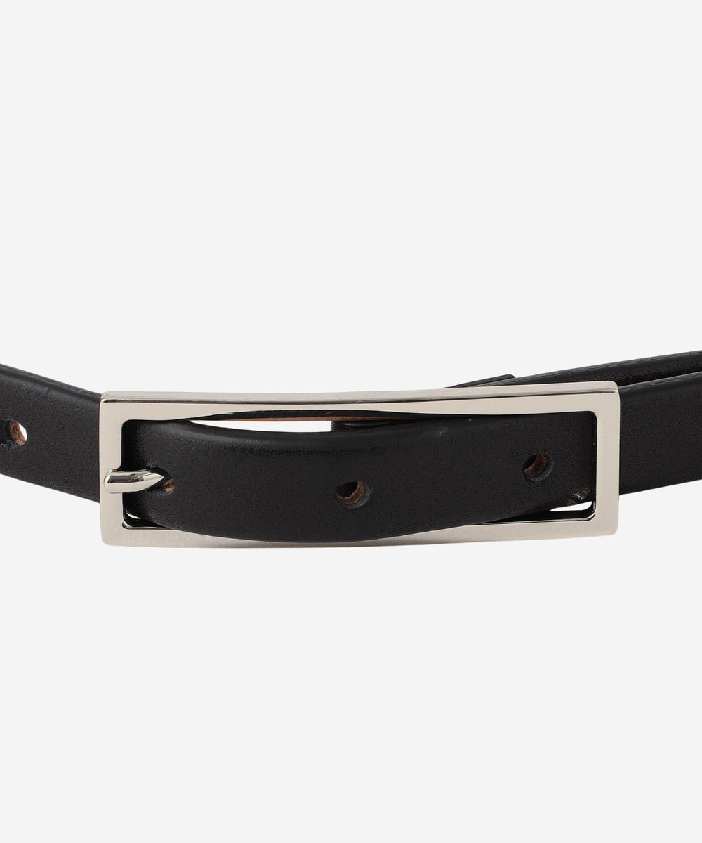 ミニマルな横長のスクエアバックルにスムースレザーを合わせたシンプルなアジャストベルトです。バックルのピンでサイズ調節できる他、背後のレザーをスライドさせて自由にサイズ調節出来るアジャストベルトとなっています。ワンピース、スカート、パンツは勿論、アウター、ストールの上からなど様々なスタイルに合わせやすい便利なベルトです。
