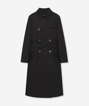 ディテールを抑えたシンプルでクリーンなトレンチコートです。程良くゆとりのあるシルエットはインナーを選ばず、リラックス感があります。オリジナルのギャバジン生地に拘ったシルエットが美しいトレンチコートに仕上がっております。総裏地、チェックライナー付きです。同素材のミドル丈トレンチコート(品番:G5A13630)もご用意しております。