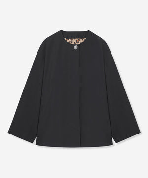MACKINTOSH LONDONの定番モデル「ROSLEY/ロズリー」のノーカラーショートコートです。スッキリとした衿ぐりとドロップした肩、裾に向けて広がる優雅なシルエットで、身長やスタイリングを選ばないショート丈は幅広いシーンで活躍するコートです。肩を少しコンパクトにリニューアルし、よりAラインに広がるシルエットに仕上げました。総裏地付き、ブラック(#09)のみ裏地(身頃)レオパード柄です。同素材のコート、(品番:G5A11710)、(品番:G5A02710)、(品番:G5A17710)もご用意しております。