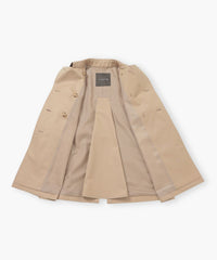 パターンやディテールなど細部にまでこだわった端正な表情のミドル丈トレンチコートです。すっきりとしたシルエットでさらりと羽織ってもさまになり、クラシカルなコーディネートに仕上がります。トレンドを問わずに活躍するベーシックアイテムです。裏地付きです。